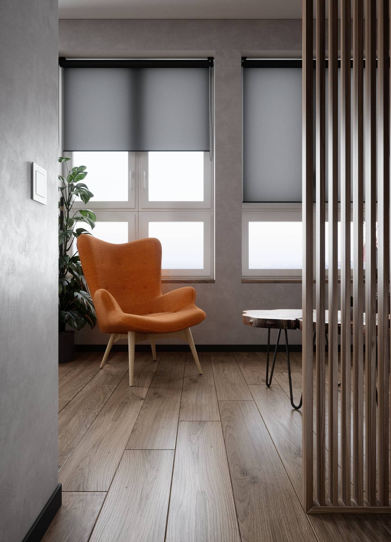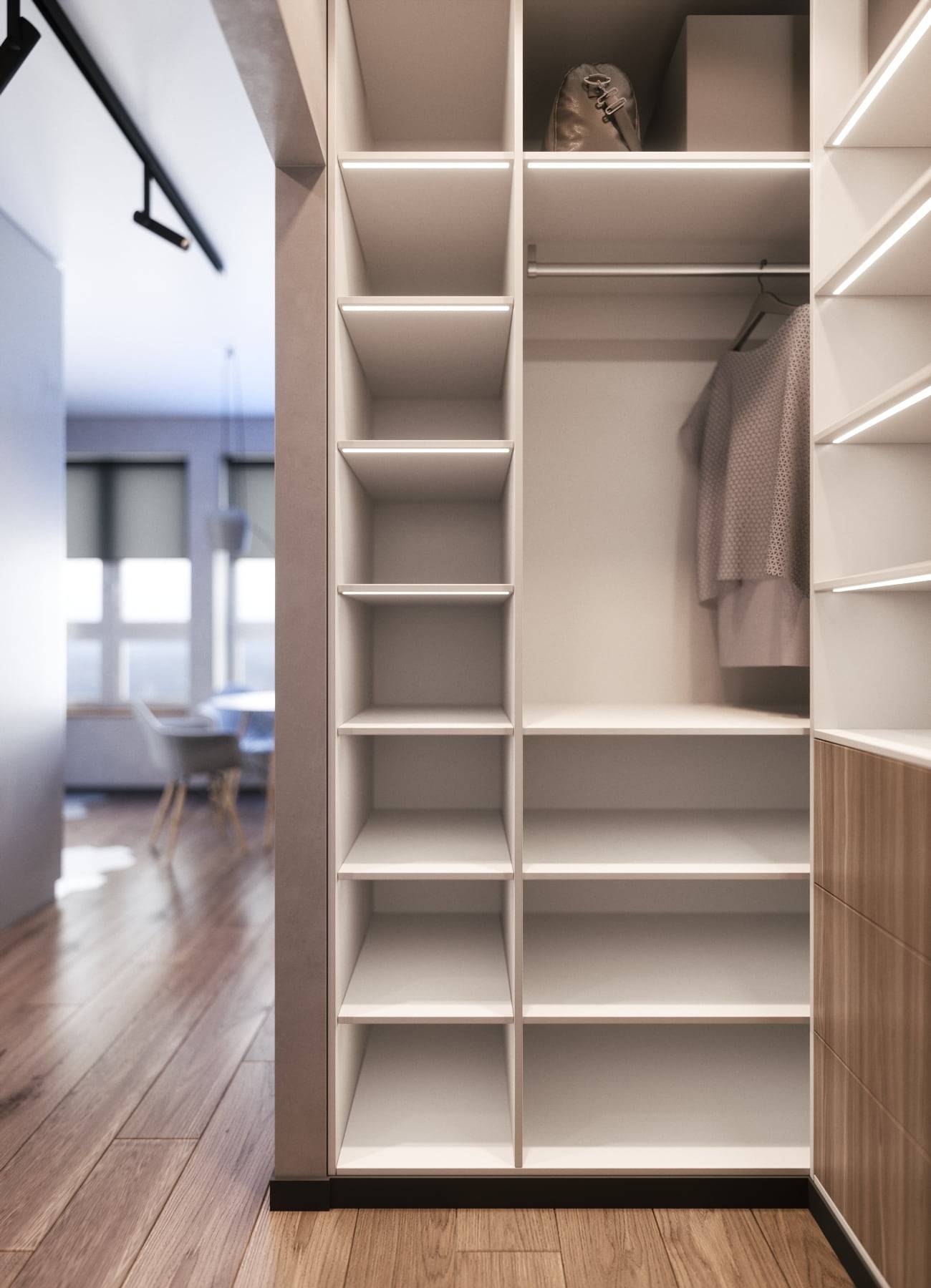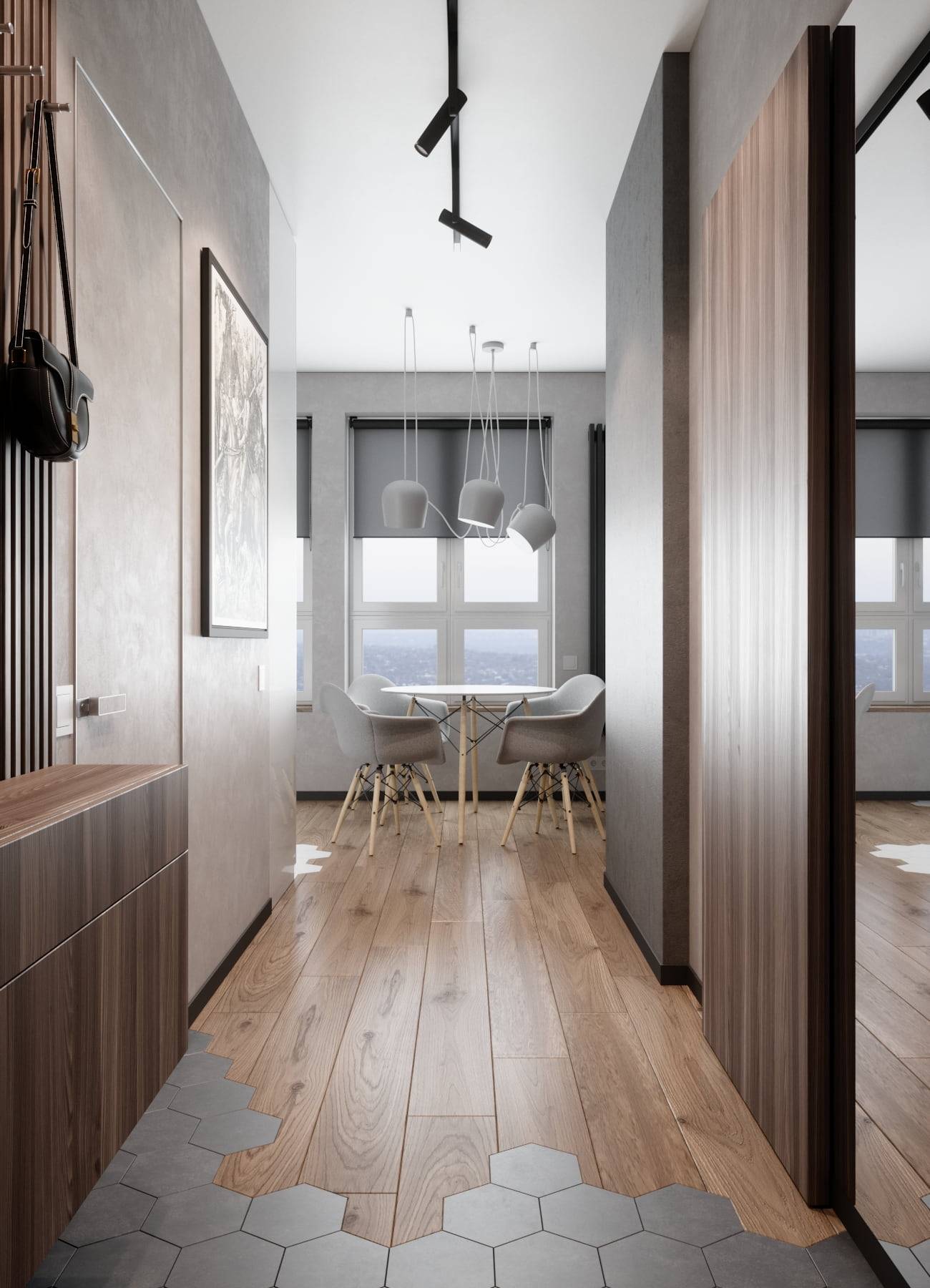 Bright apartment with scandinavian interior designed for a young couple in Moscow. Design concept combines Scandinavian minimalism and loft style. The main goal was to create a layout with efficient use of space in a relatively small area. We used materials like engineered floorboards, porcelain stoneware and decorative plaster that are resistant to moisture and mechanical stress.