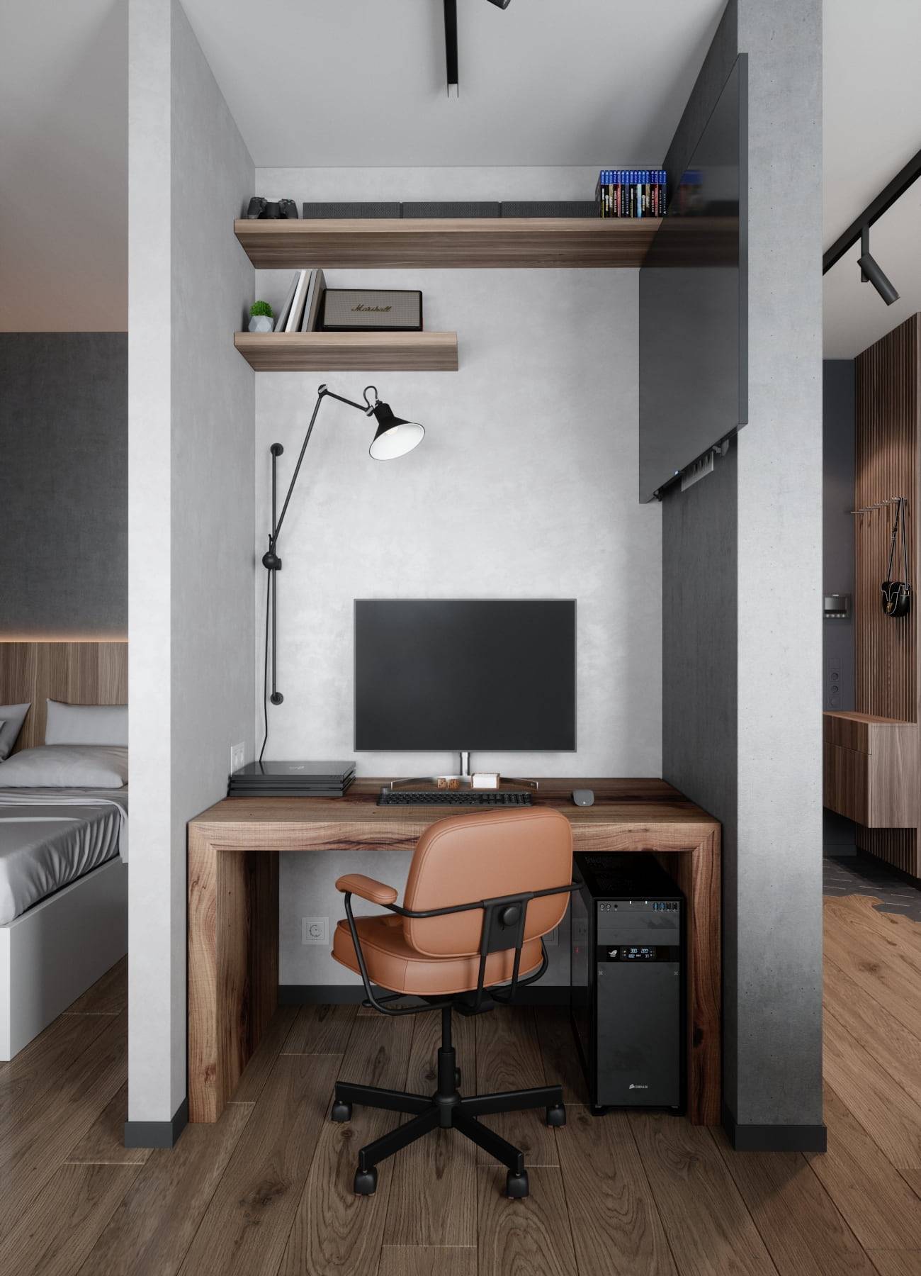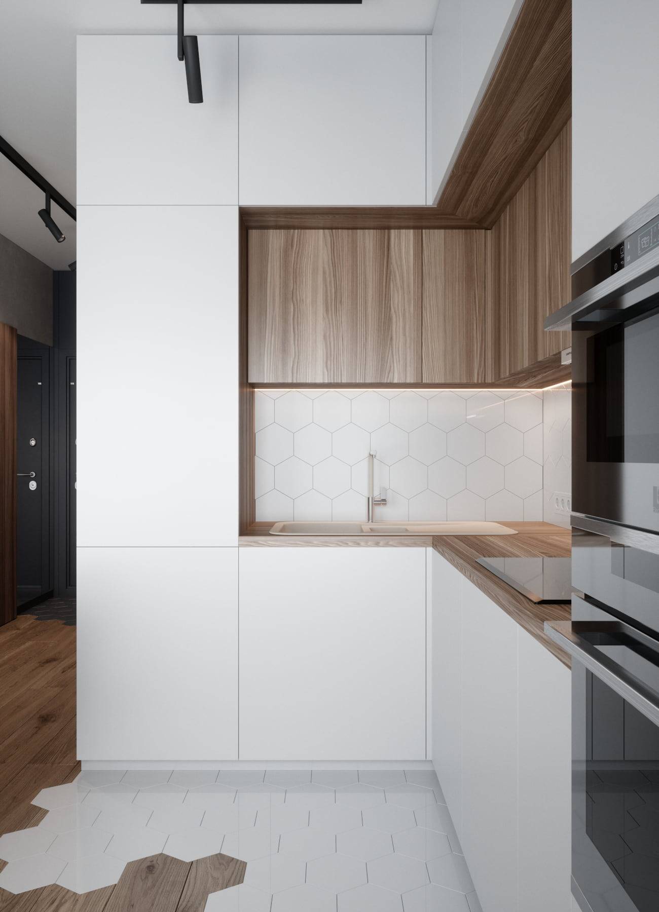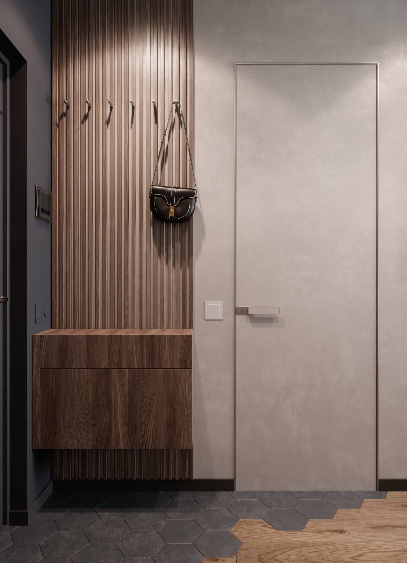 Bright apartment with scandinavian interior designed for a young couple in Moscow. Design concept combines Scandinavian minimalism and loft style. The main goal was to create a layout with efficient use of space in a relatively small area. We used materials like engineered floorboards, porcelain stoneware and decorative plaster that are resistant to moisture and mechanical stress.