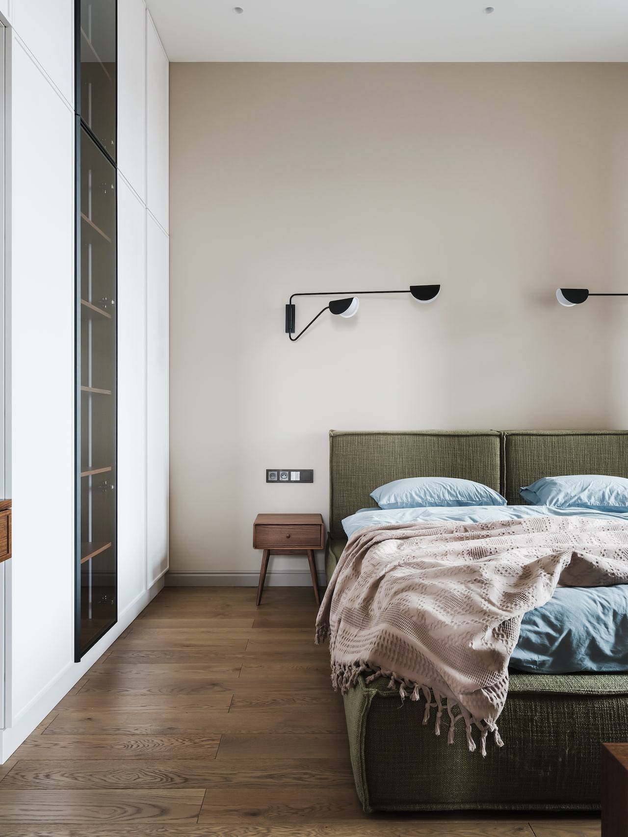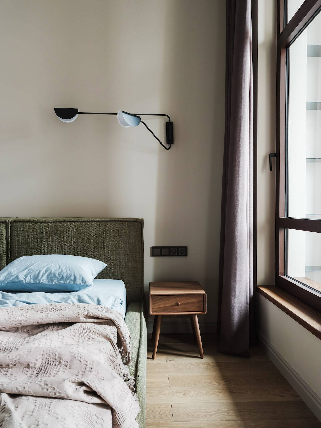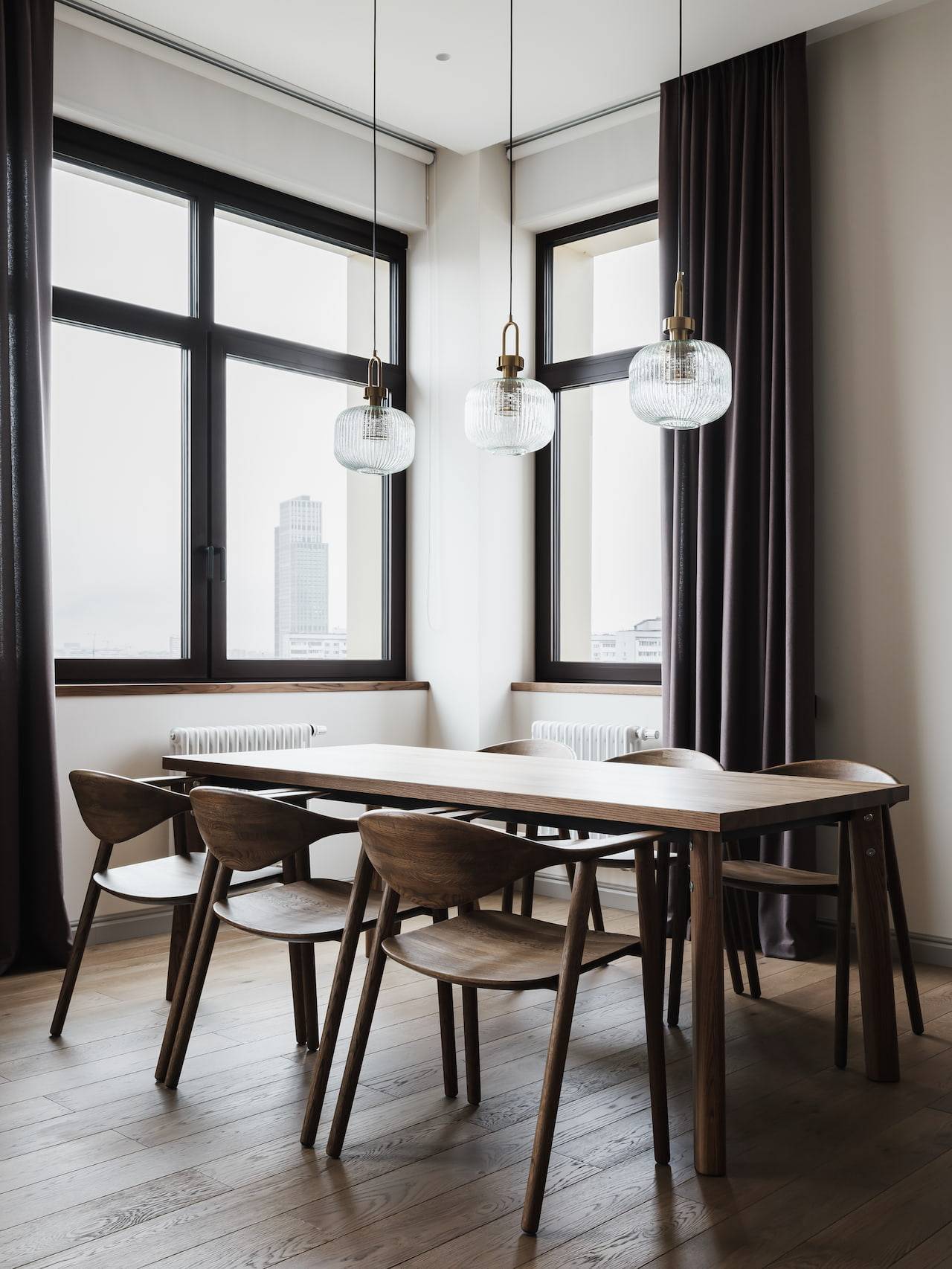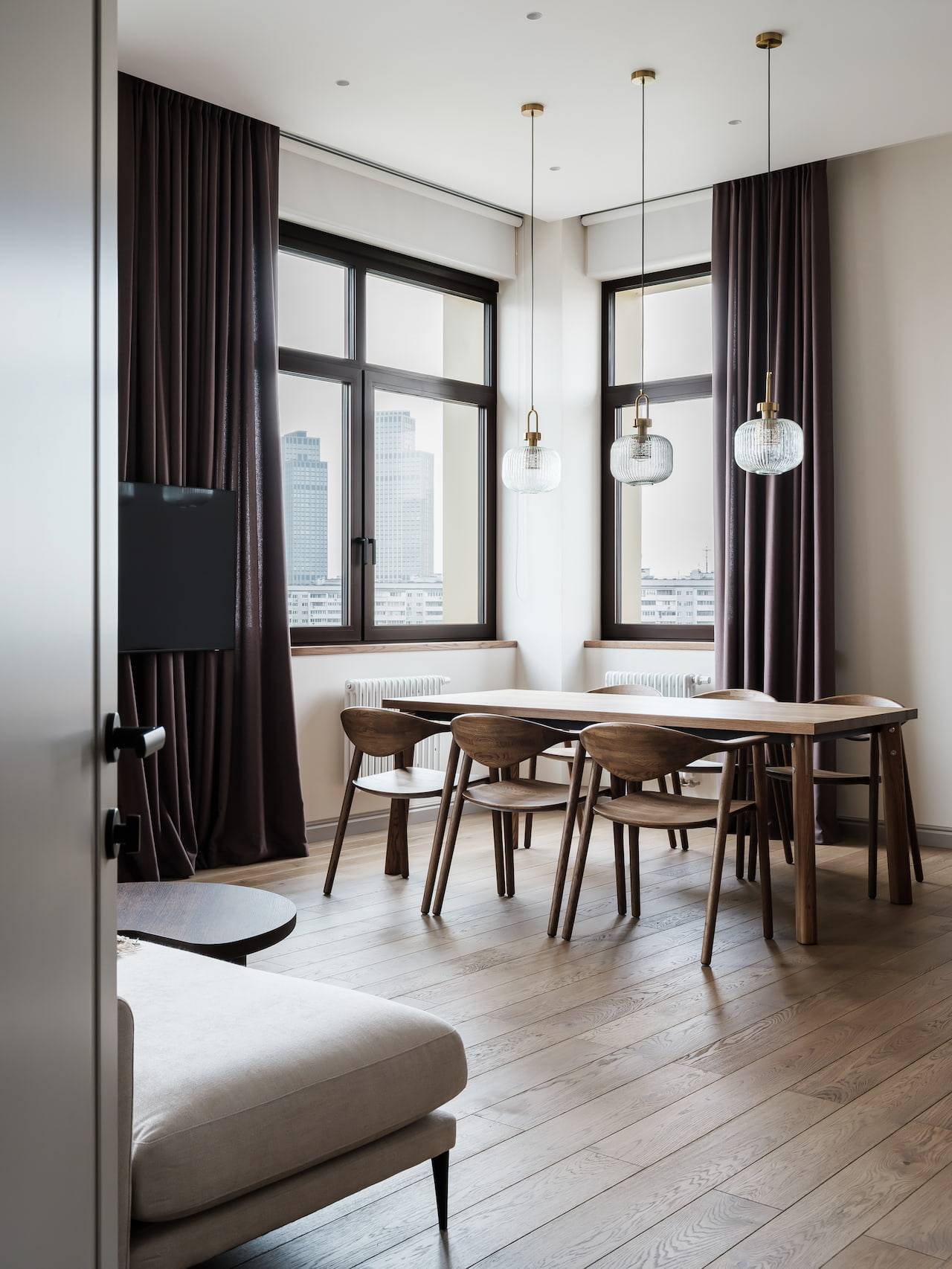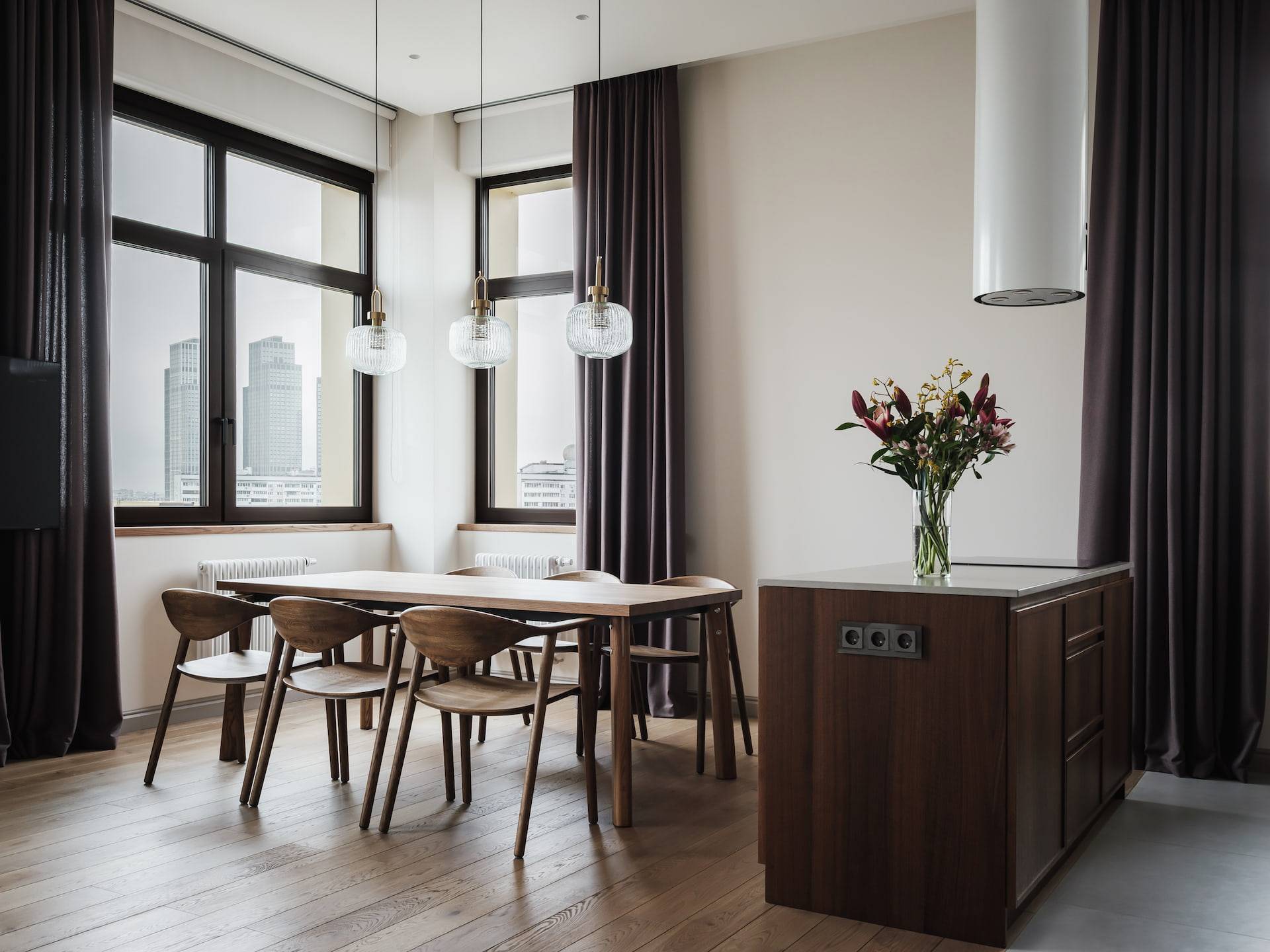 The general task is - create a modern but very cozy space that makes you feel at home. Natural materials, warm colors, soft textiles, and abundant greenery create a calm and comfortable atmosphere, great for relaxing or getting work done.