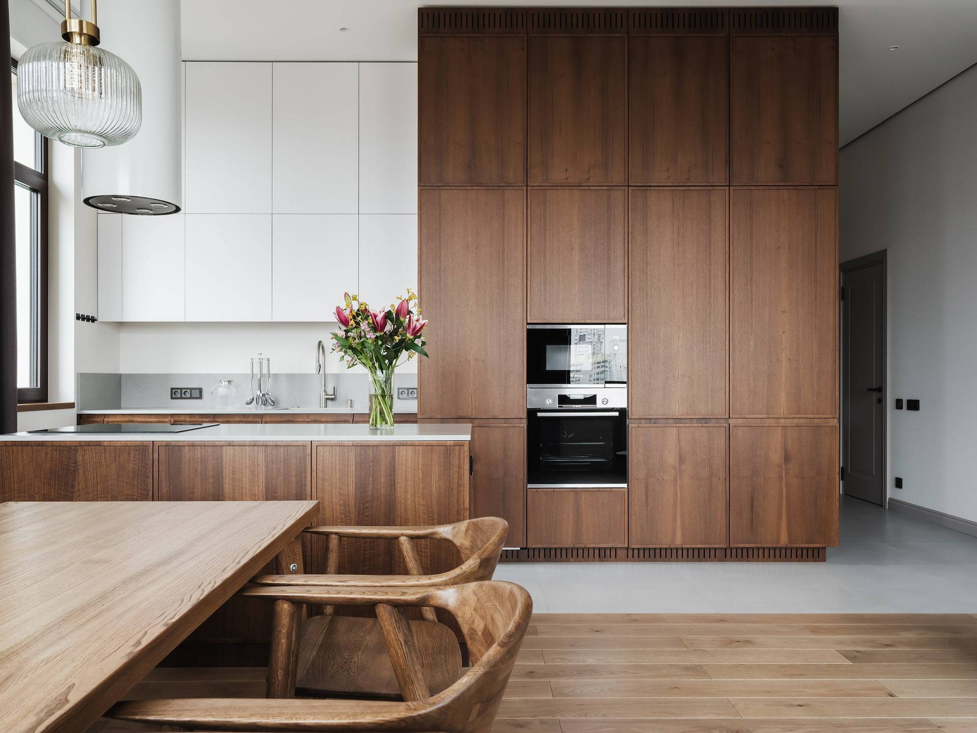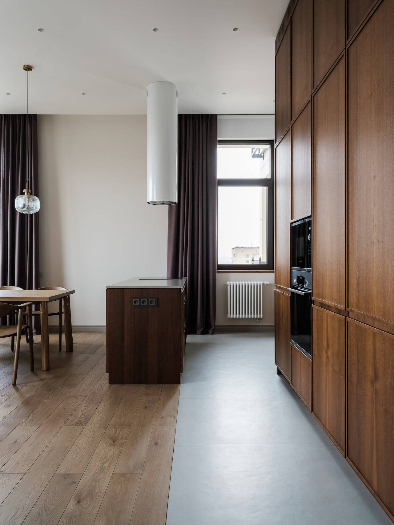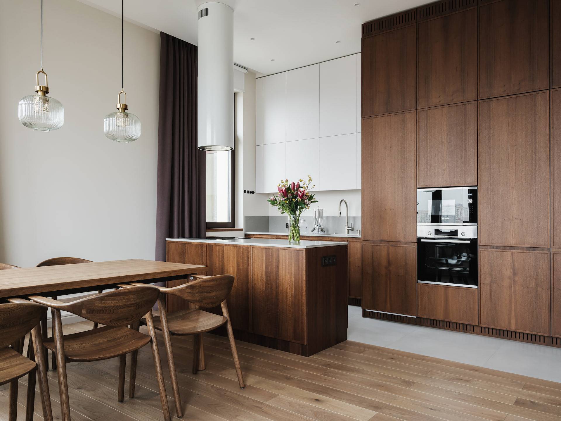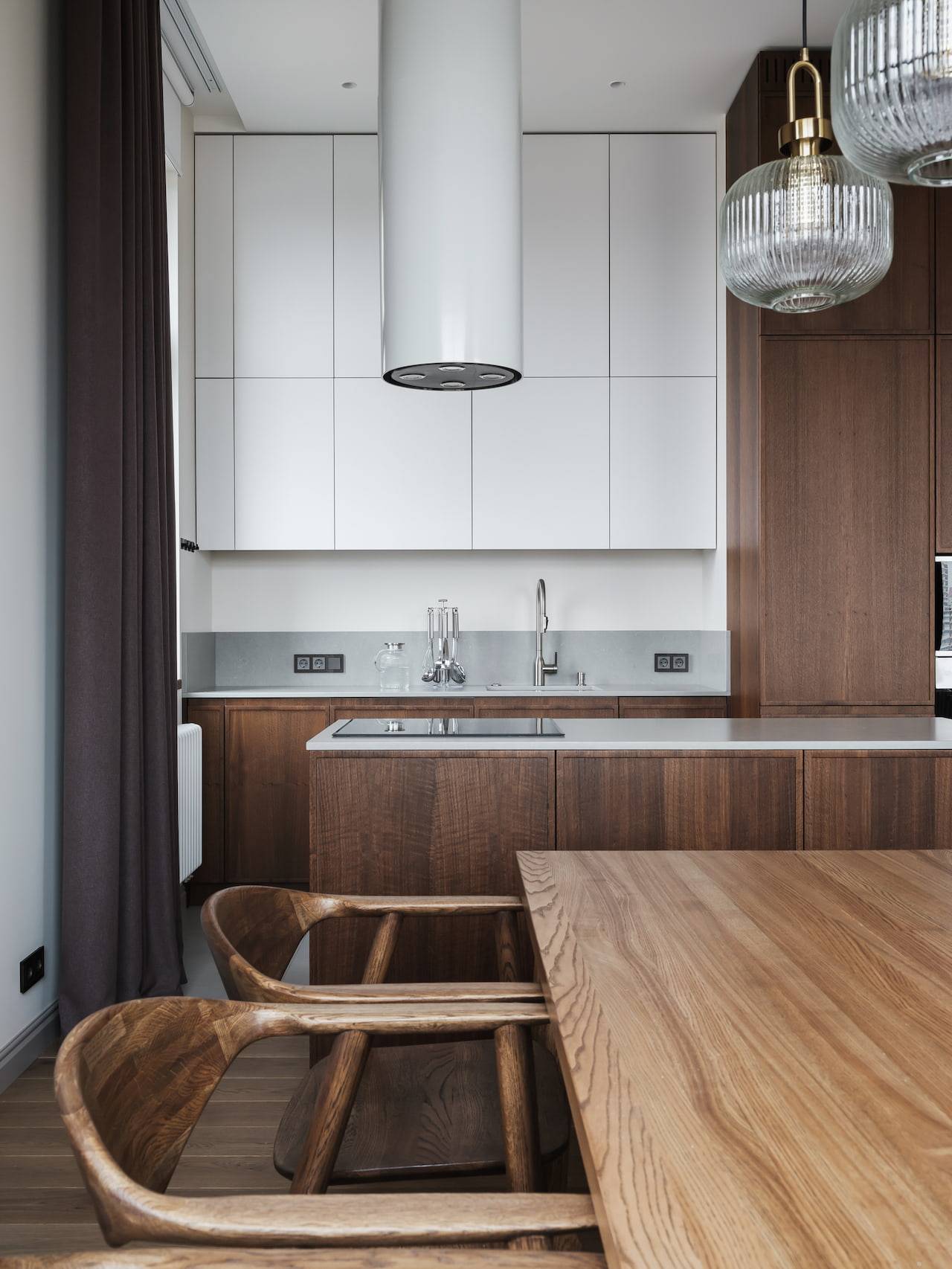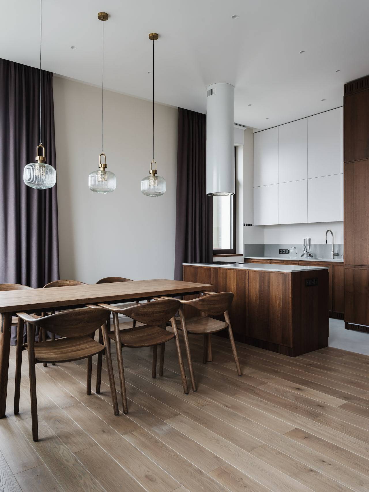The general task is - create a modern but very cozy space that makes you feel at home. Natural materials, warm colors, soft textiles, and abundant greenery create a calm and comfortable atmosphere, great for relaxing or getting work done.