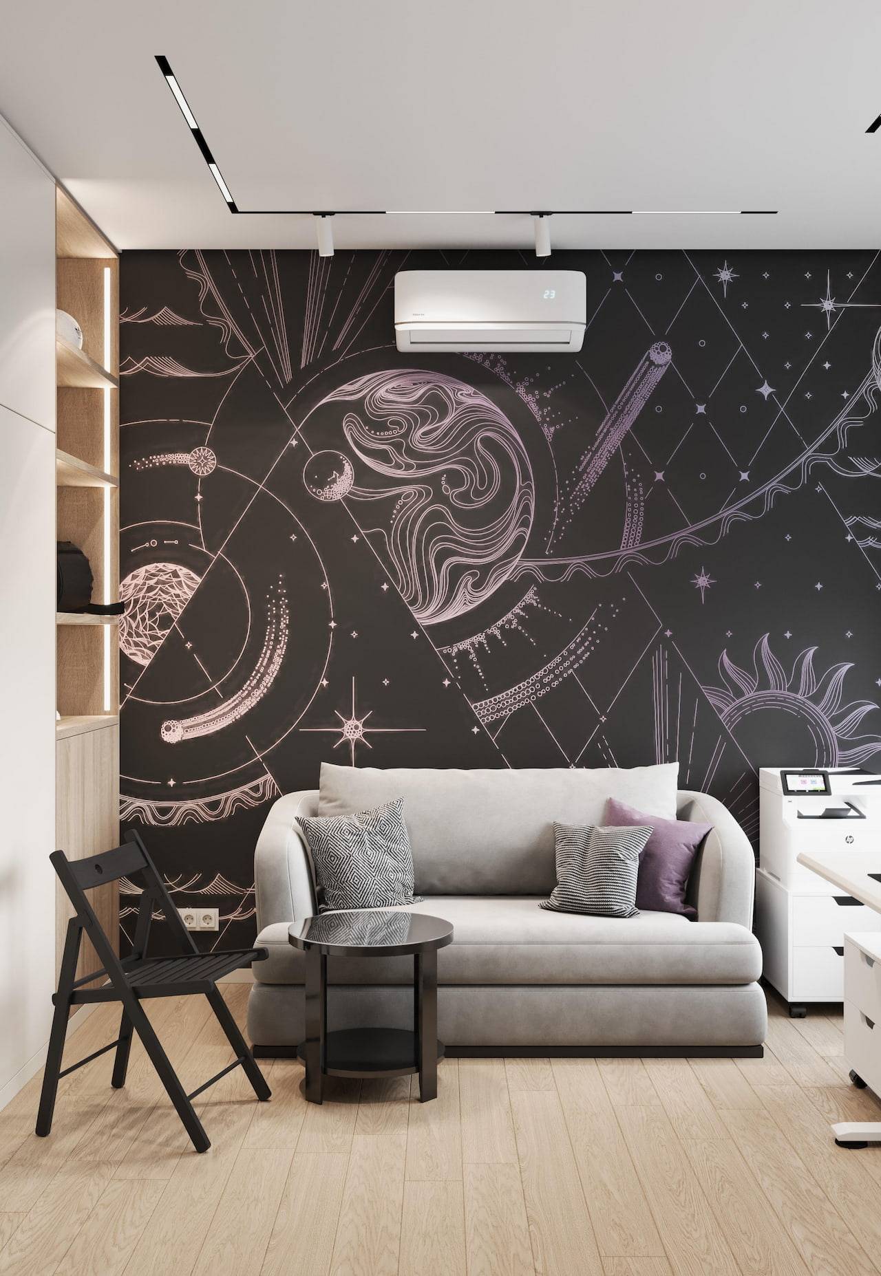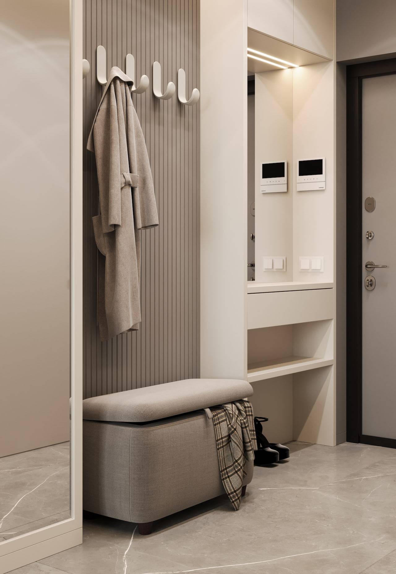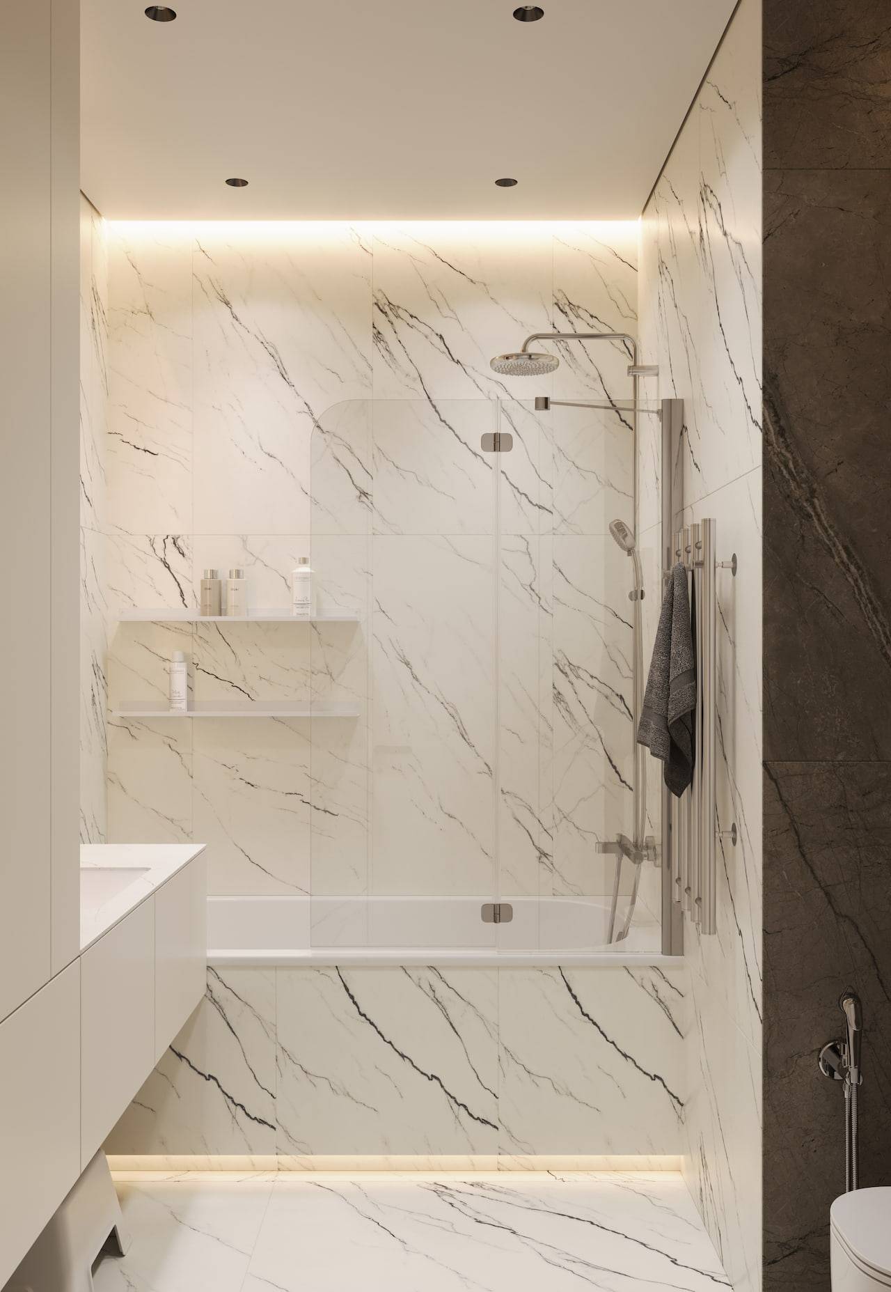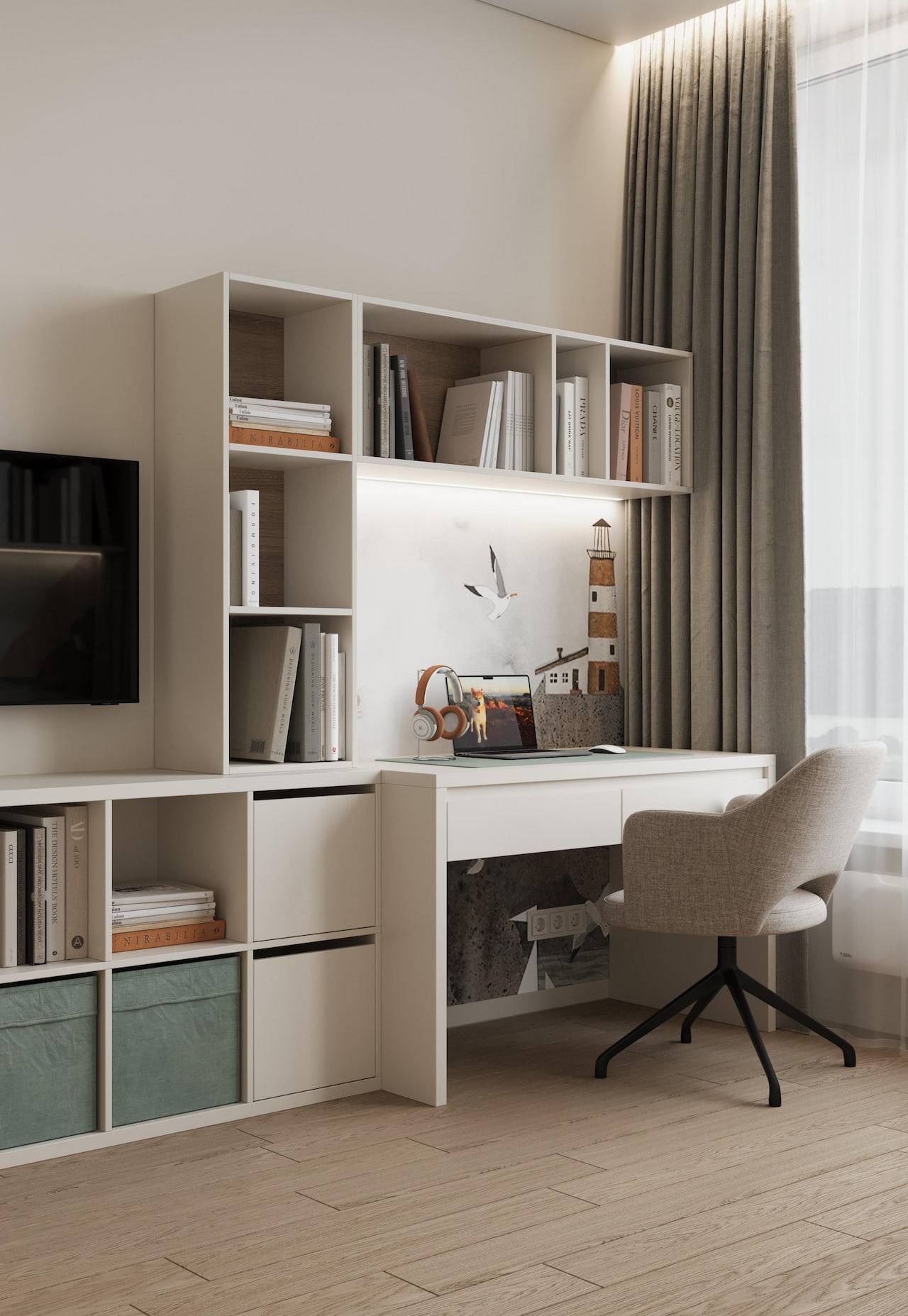 A light and modern apartment designed to provide comfortable living for a young family. The apartment features a spacious master bedroom, a bathroom with marble finishes, an open-plan kitchen and living area with a gray color scheme. The children's room can be easily transformed for two children. The office of the head of the family is a flexible space that combines a game area with colored lighting and a place to work and meet with friends.