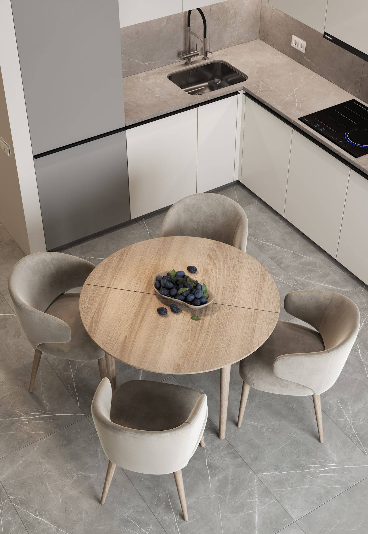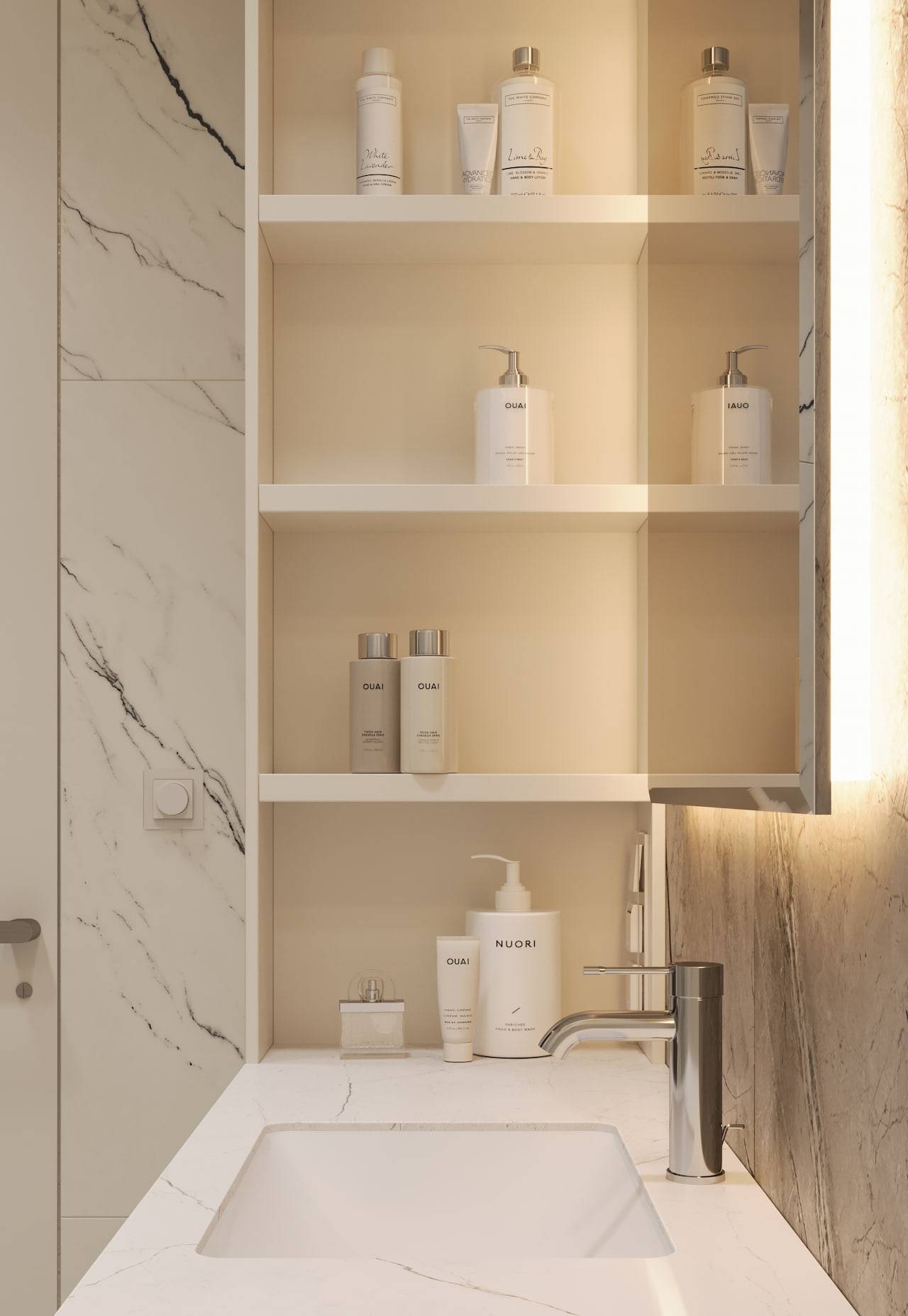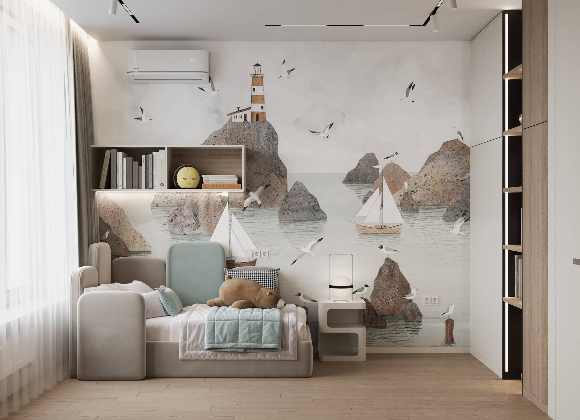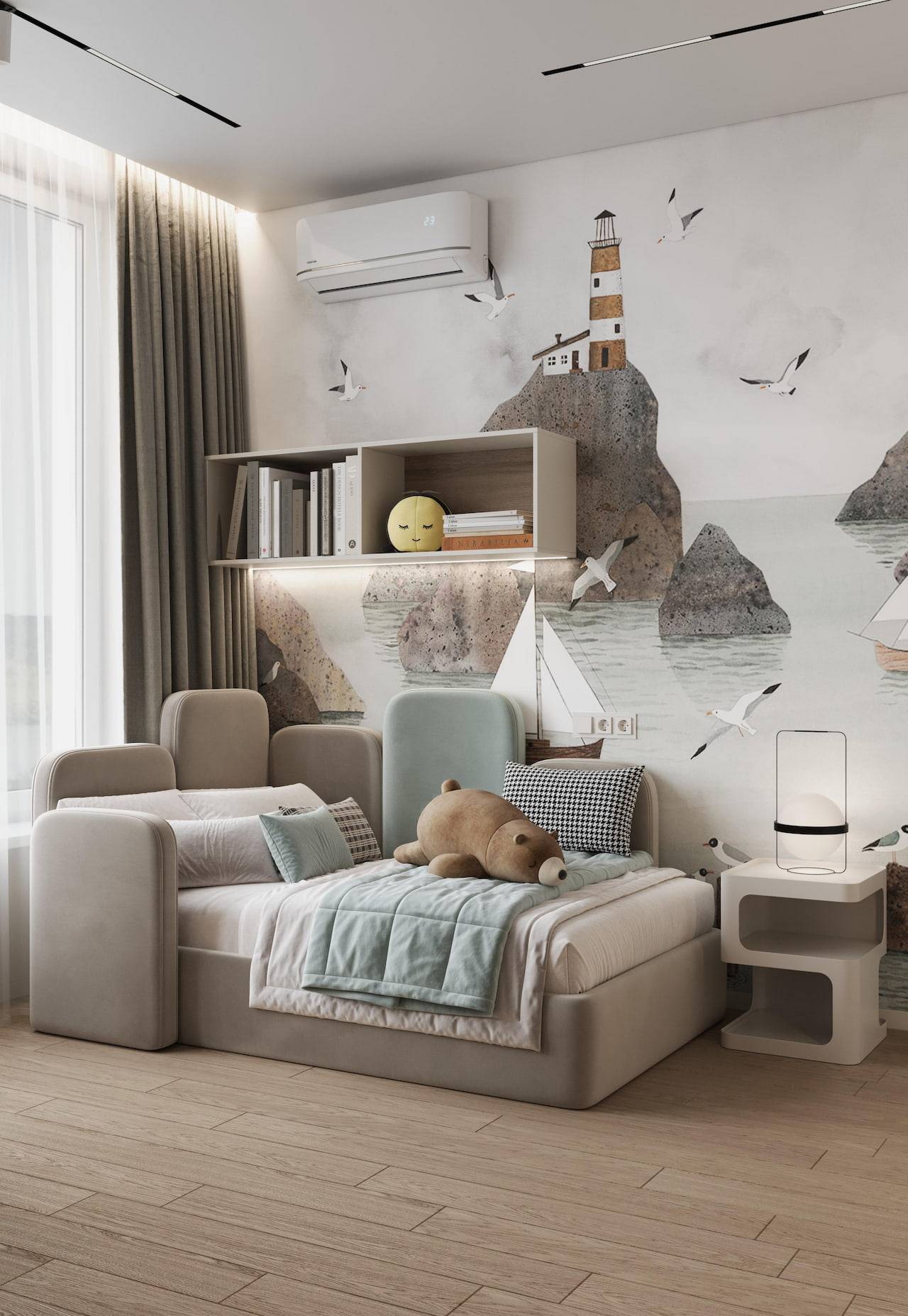A light and modern apartment designed to provide comfortable living for a young family. The apartment features a spacious master bedroom, a bathroom with marble finishes, an open-plan kitchen and living area with a gray color scheme. The children's room can be easily transformed for two children. The office of the head of the family is a flexible space that combines a game area with colored lighting and a place to work and meet with friends.
