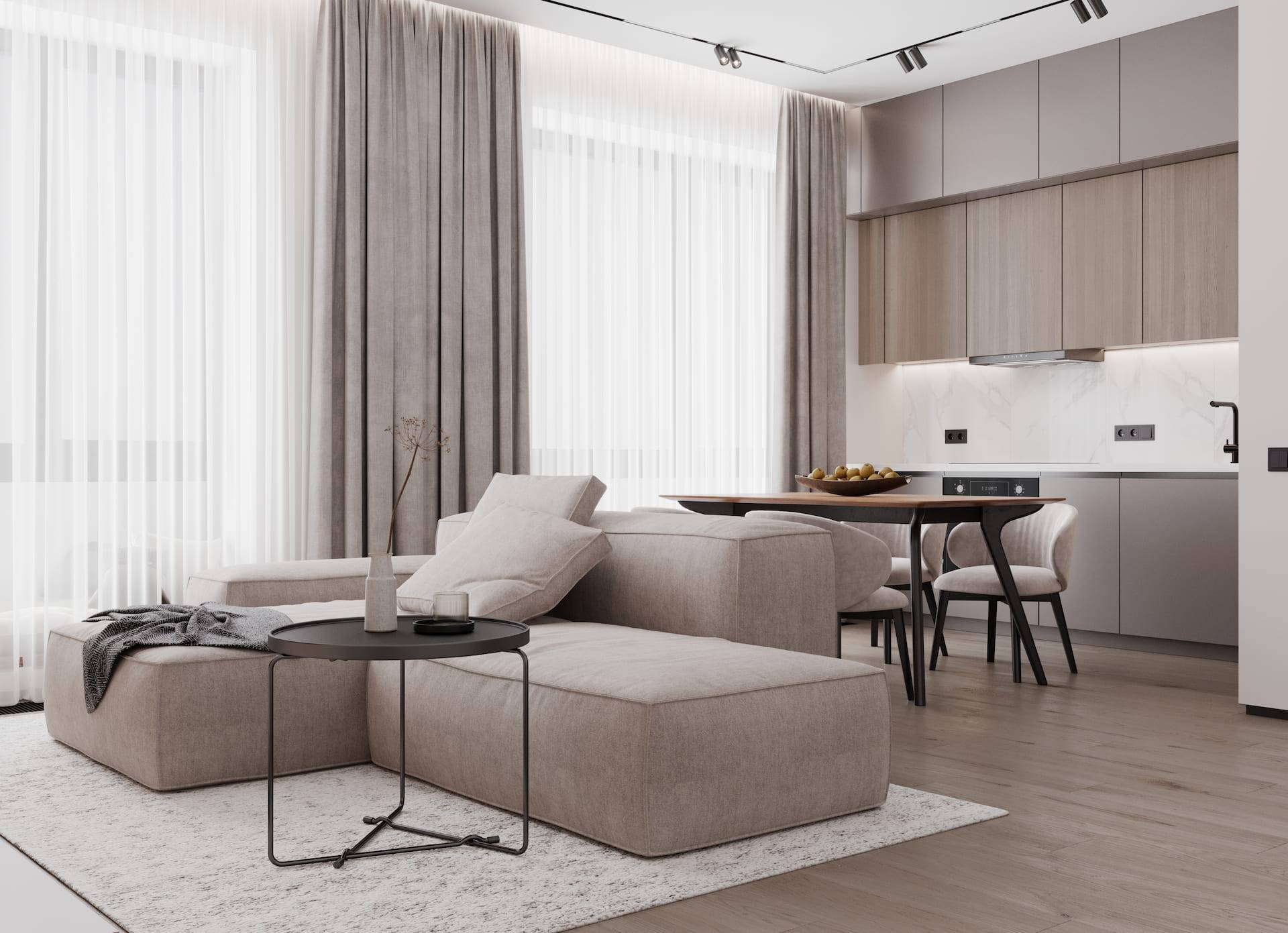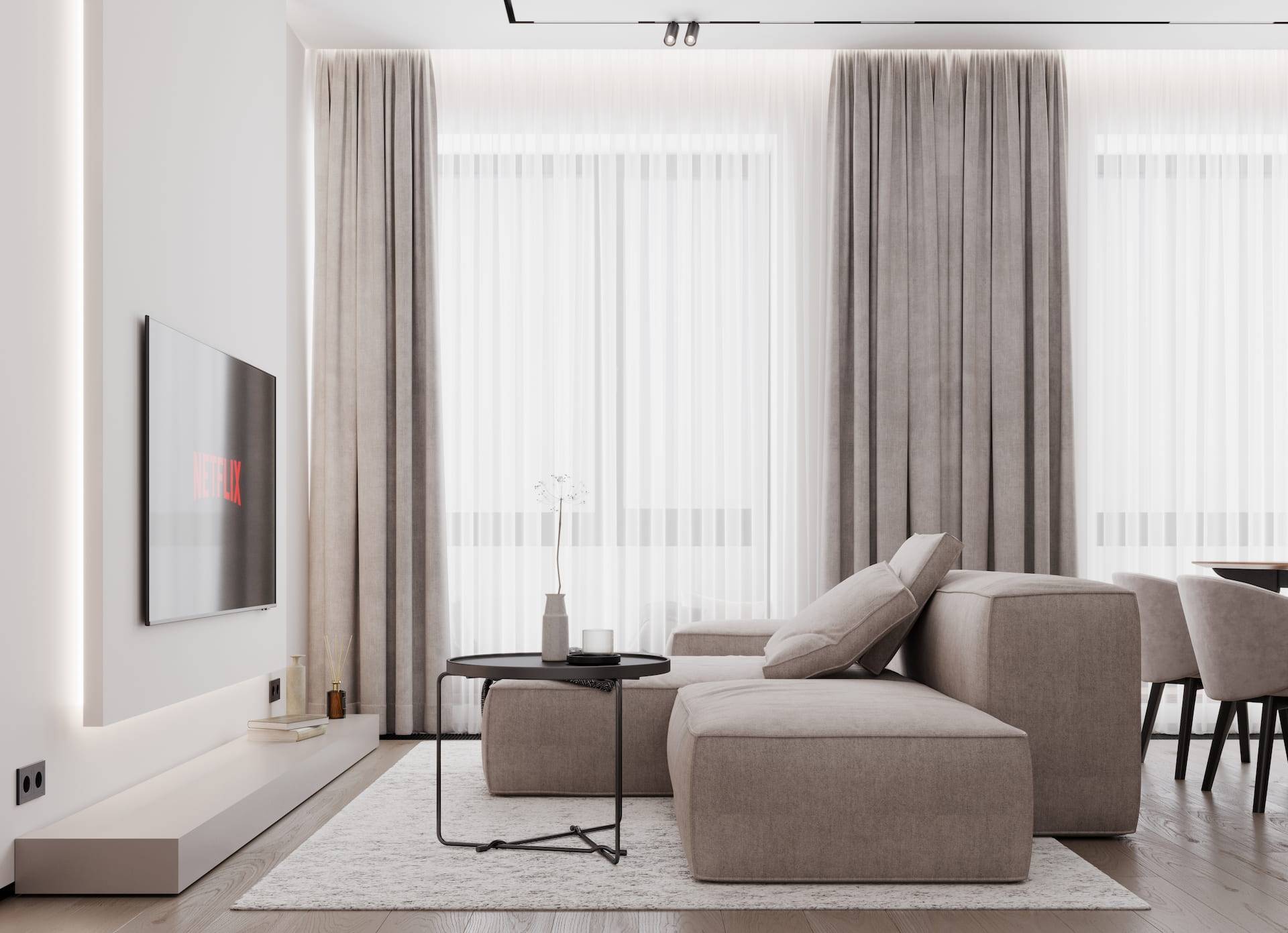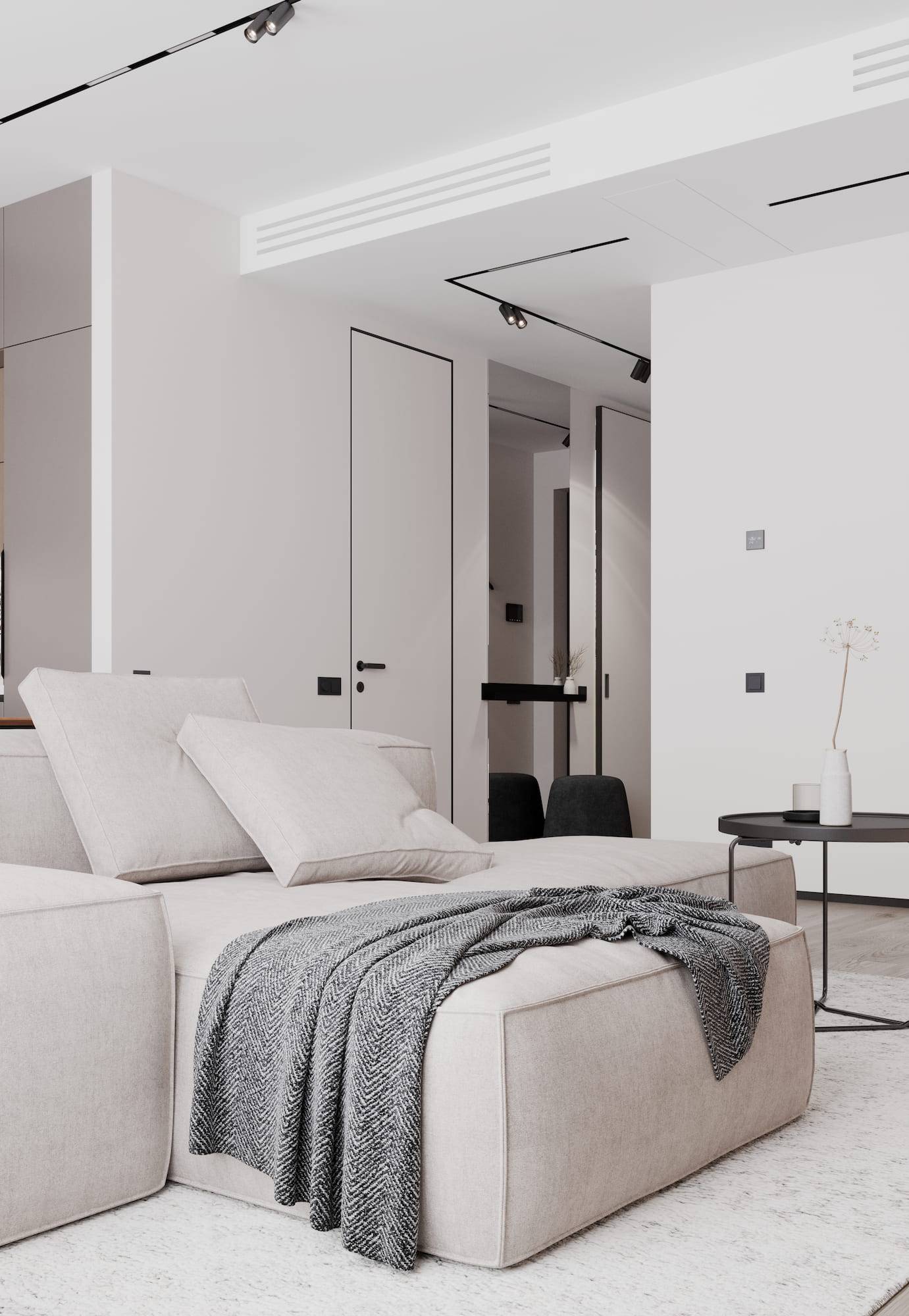 Bright apartment with minimalist interior available for rent in Moscow. Apartment interior was designed in a way that it can be transformed to suit clients' needs.