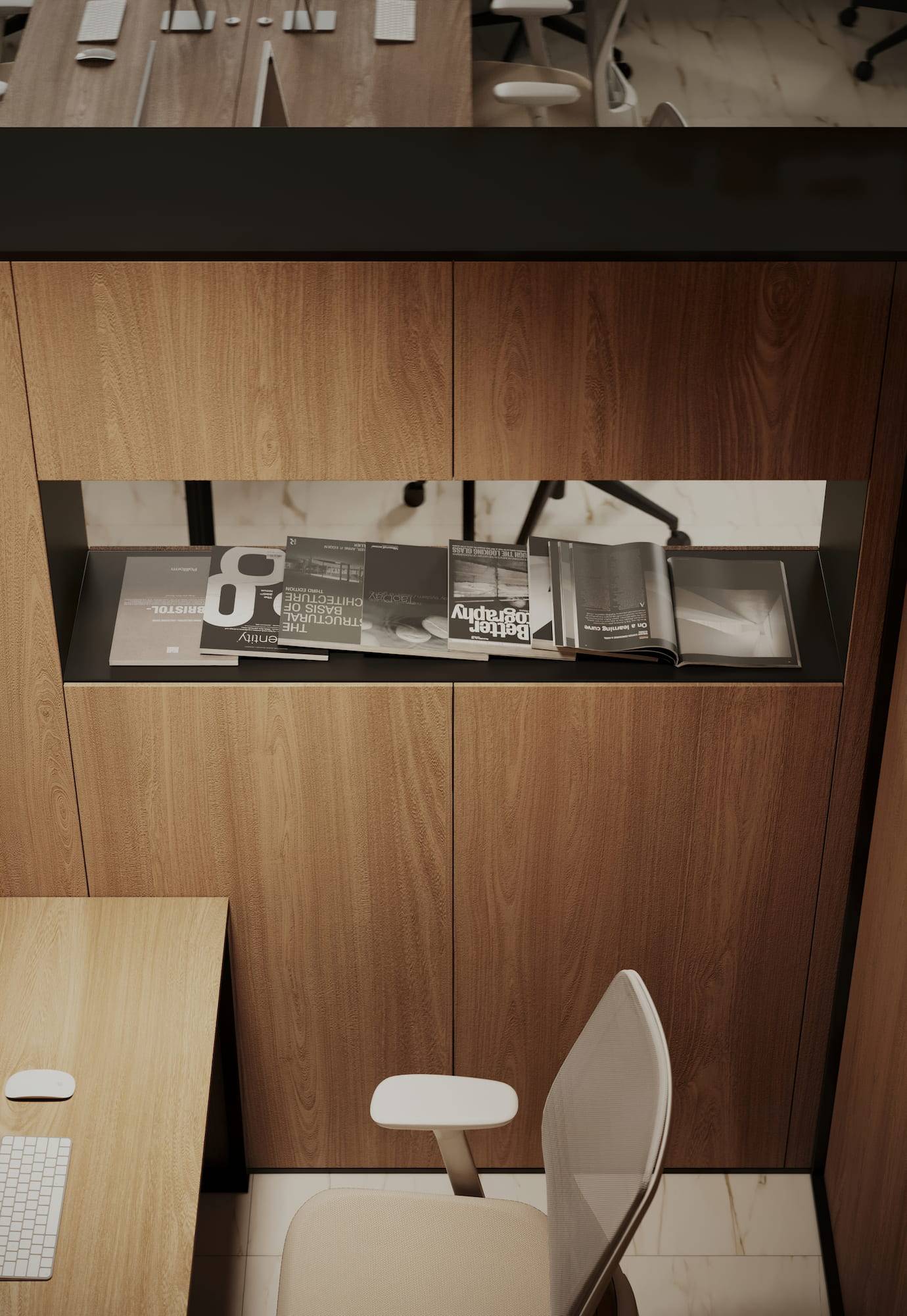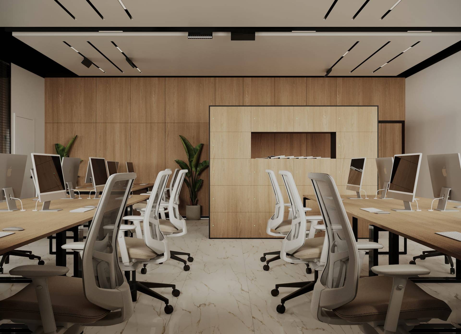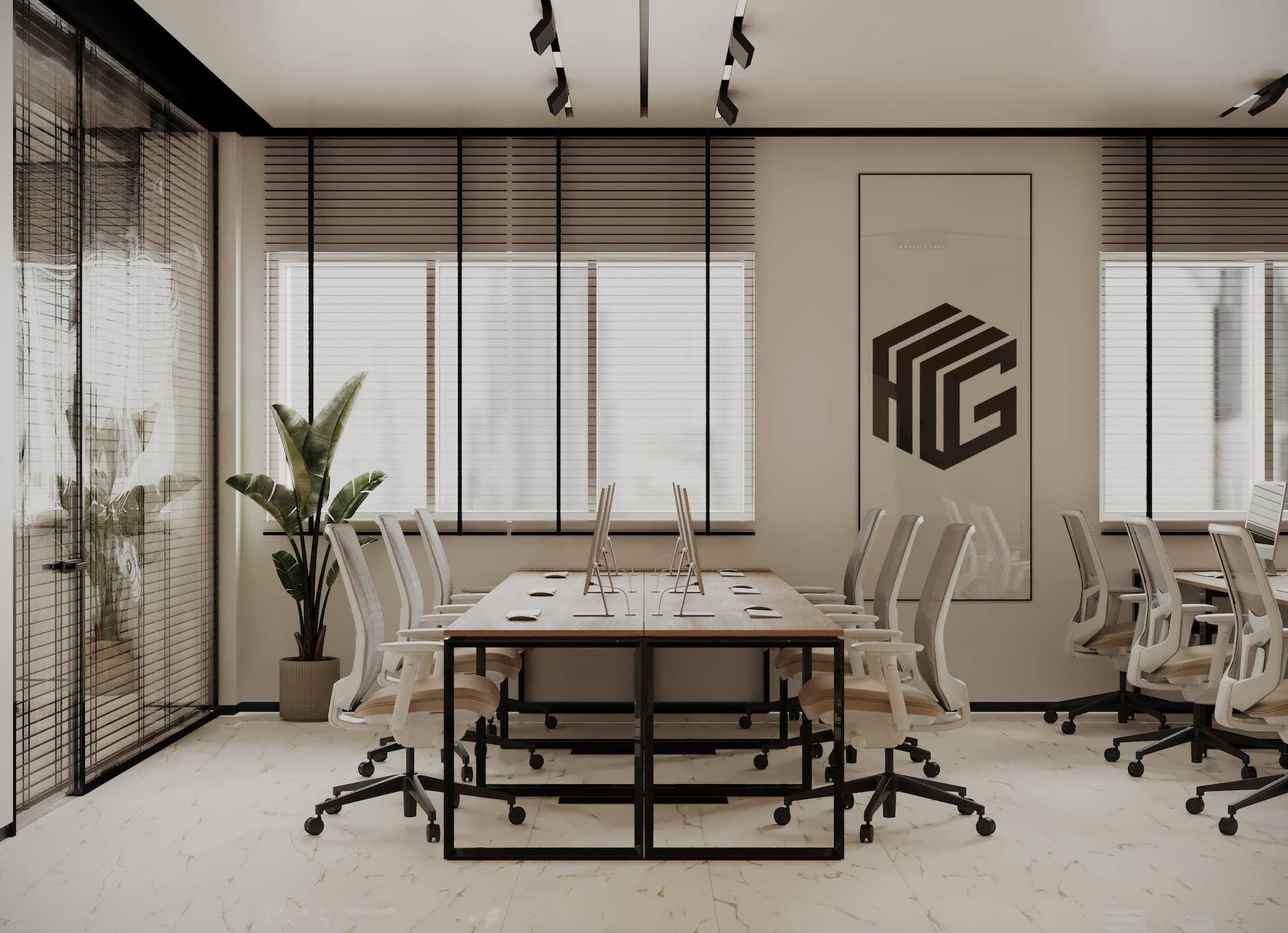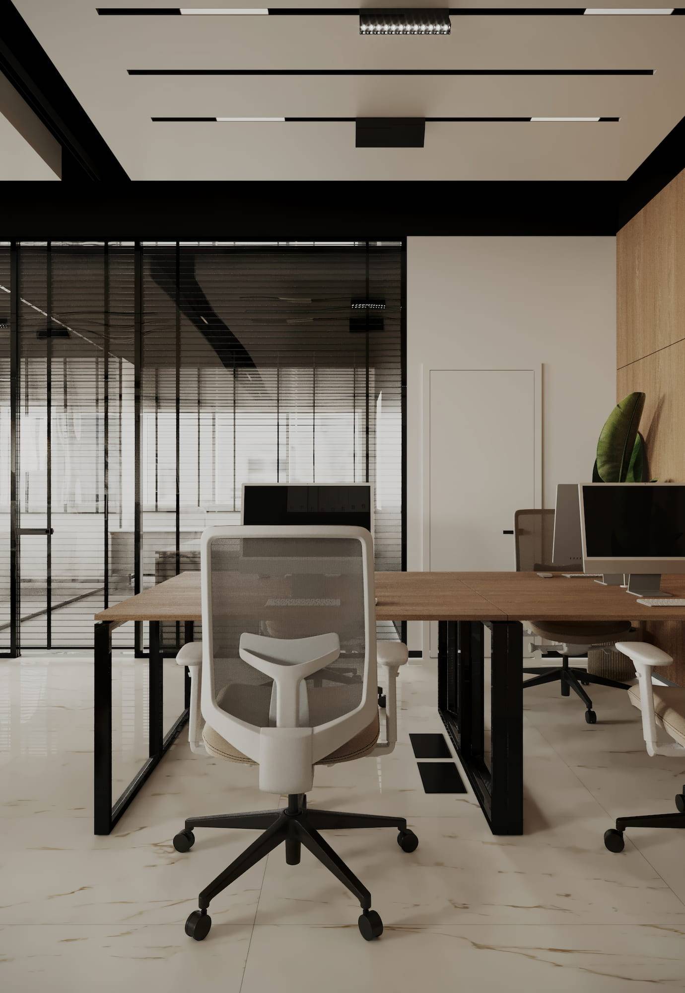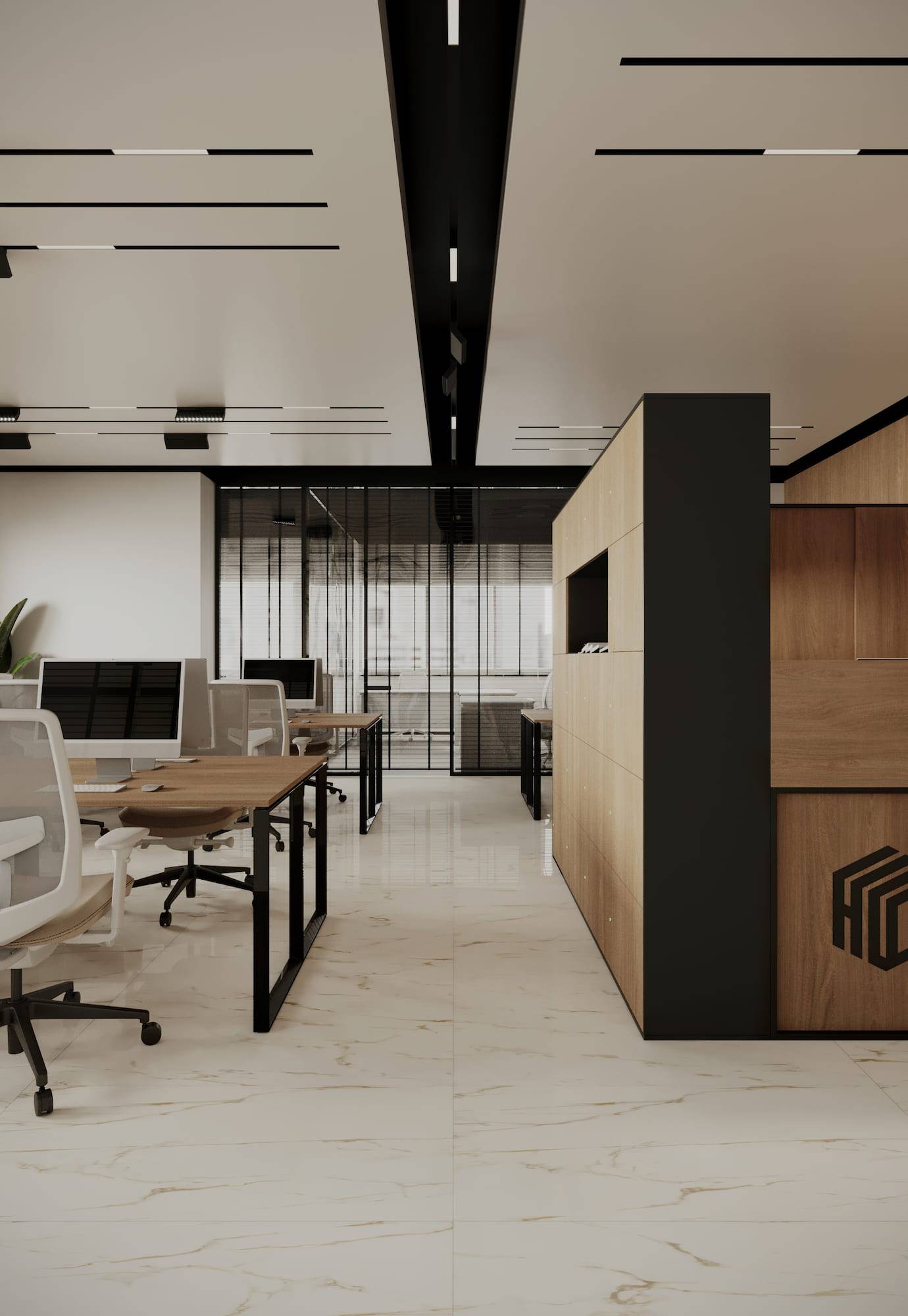 Office space available for rent located in Dubai, UAE. Design concept considers factors like local culture, weather conditions and ergonomic principles.