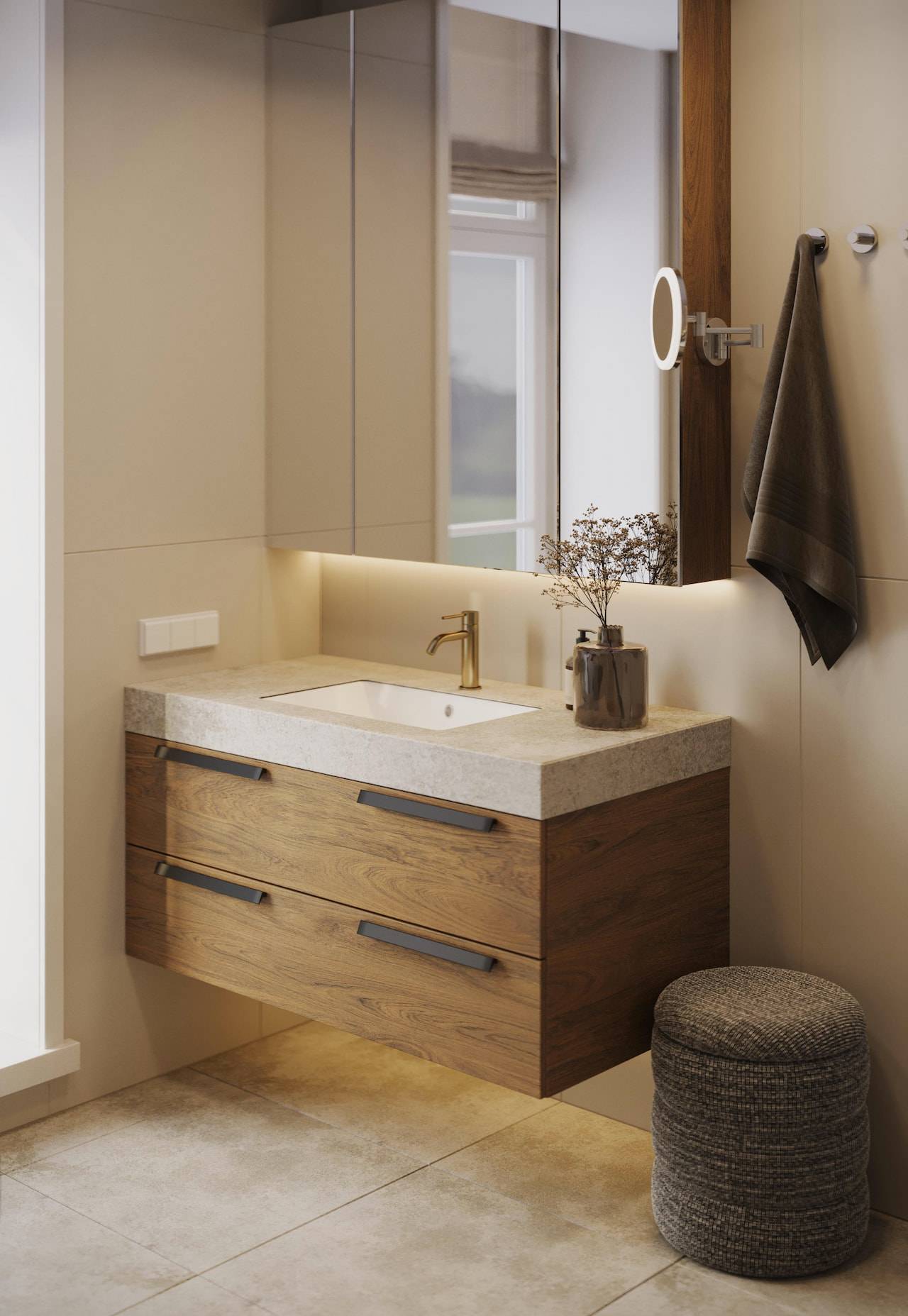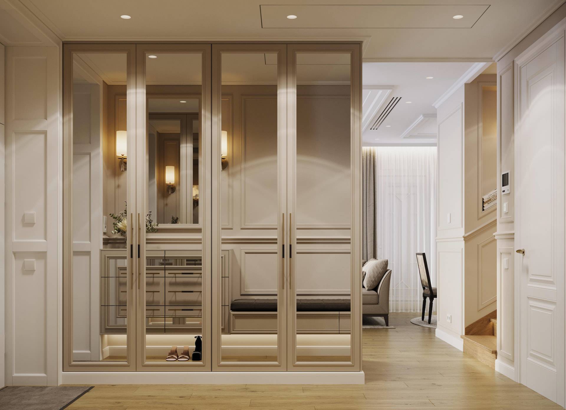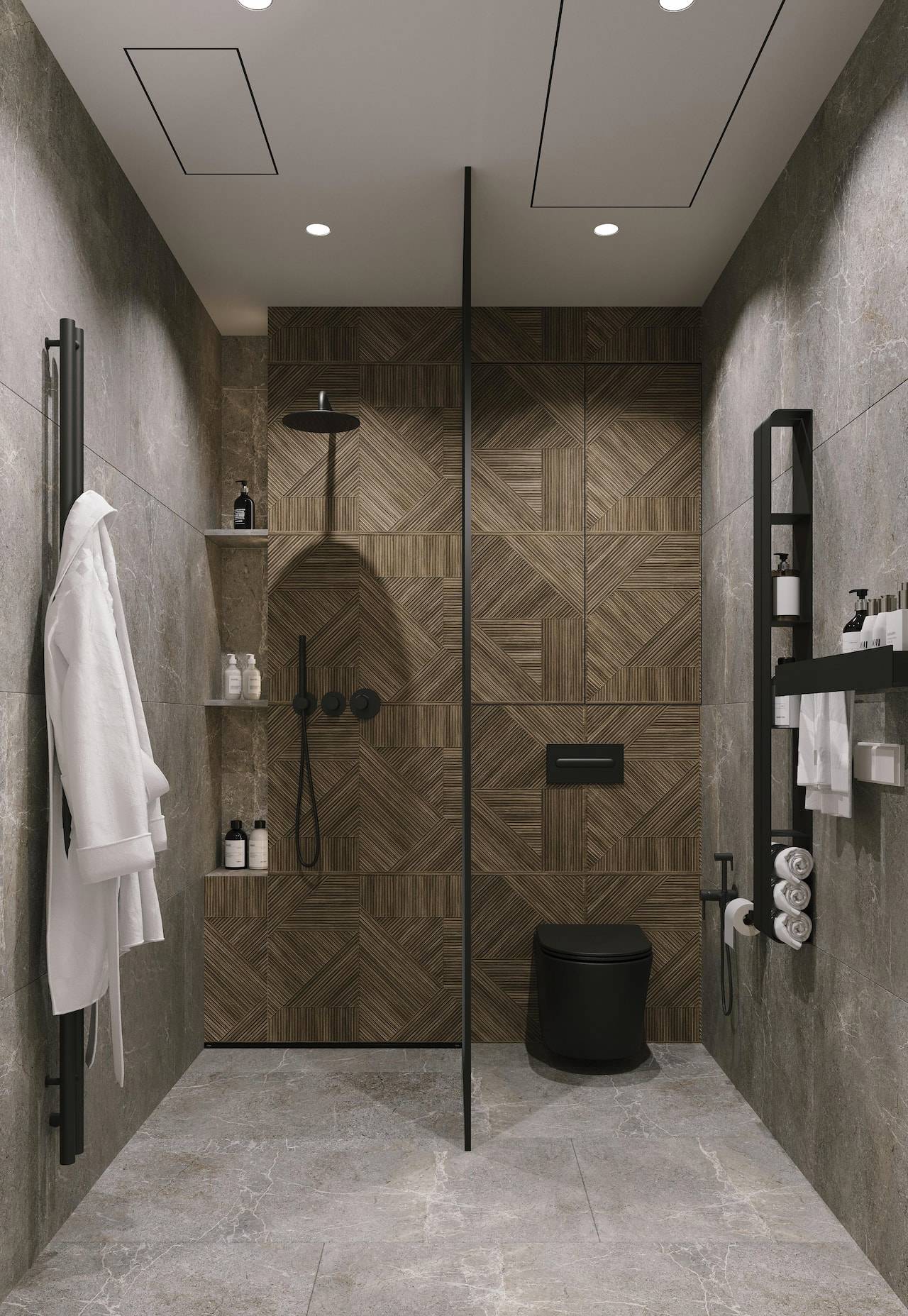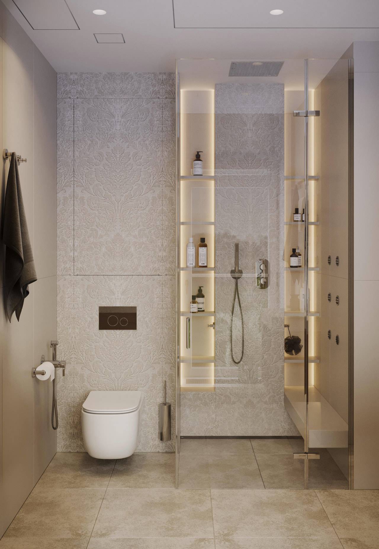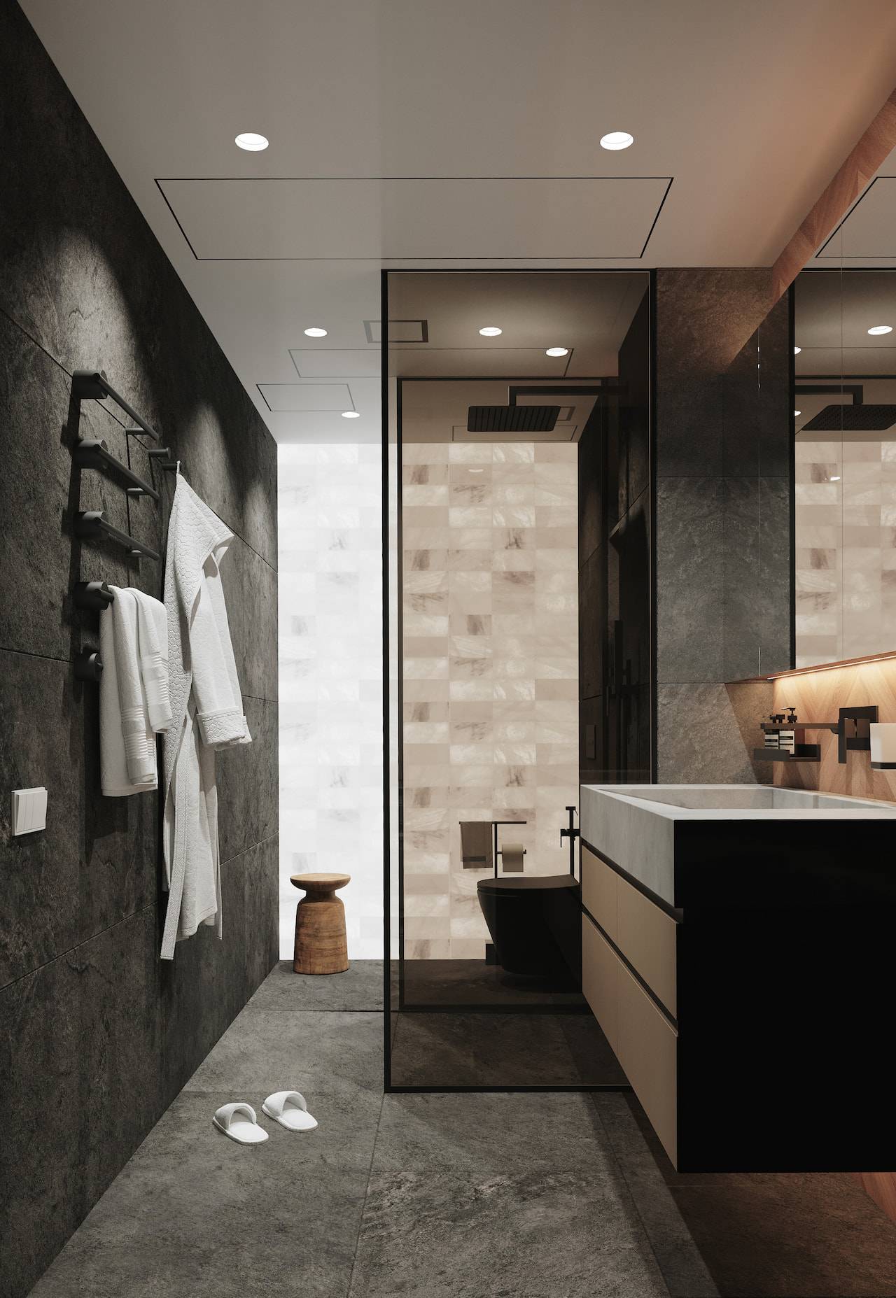 The three-story townhouse, in the American classic style, includes elements of loft styles. It combines classic moldings and trims on the walls, multilevel lighting, and a restrained color scheme, typical of American classics. While brick walls and a brutal bathroom with grey stone and black plumbing are typically of loft style. The house was designed for comfortable family living, each bedroom has its own dressing room and bathroom. The kitchen-living area takes center stage in the house as the house owner enjoys cooking and has guests over.