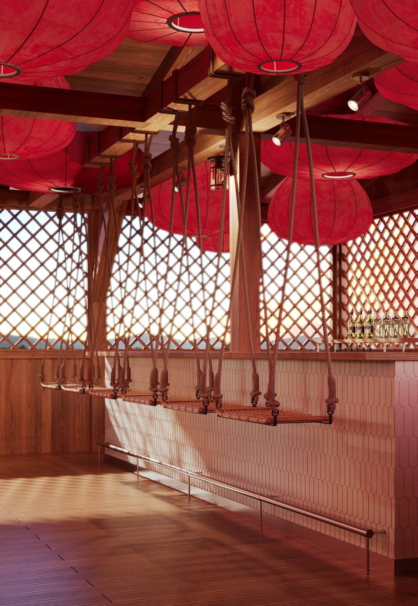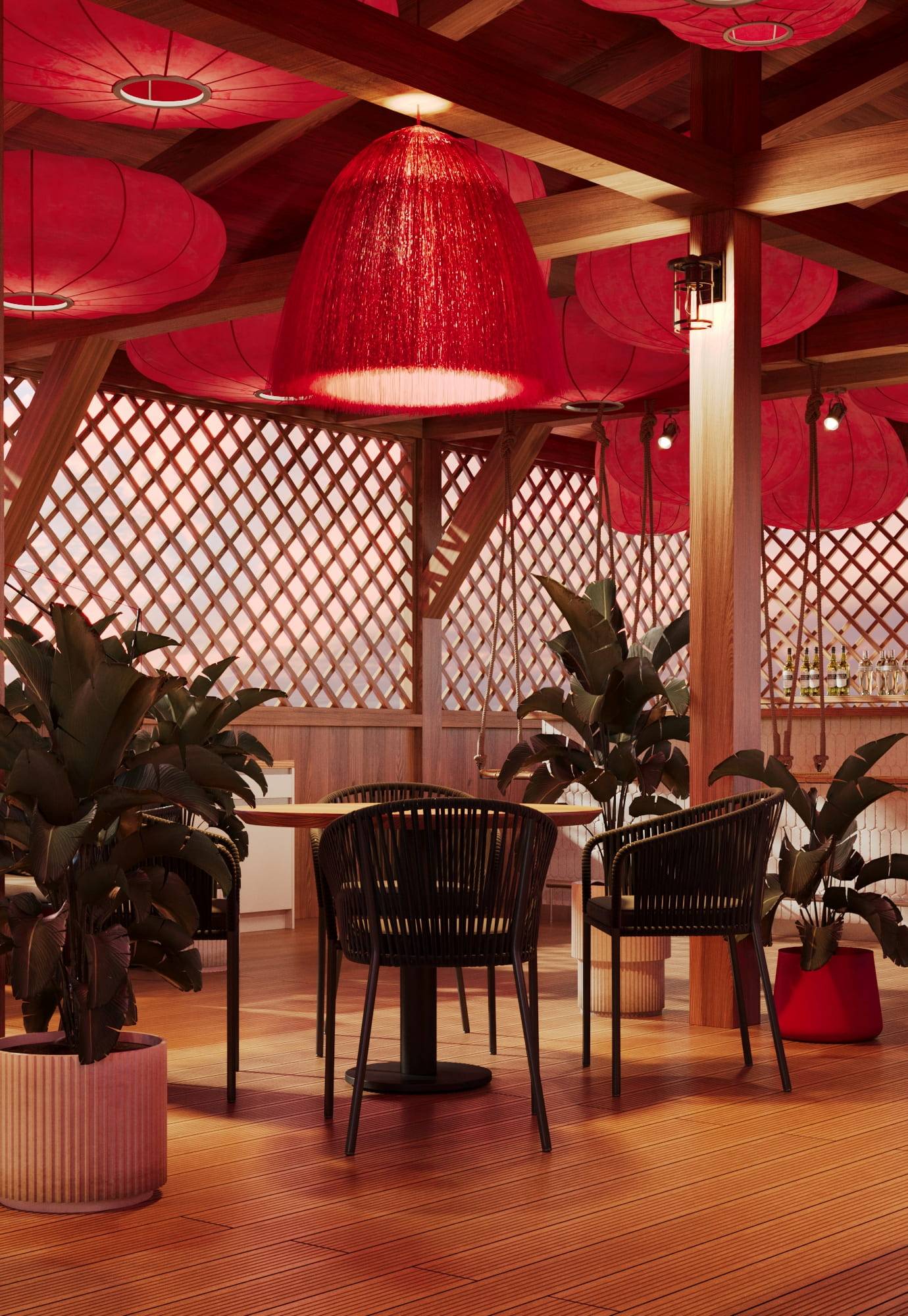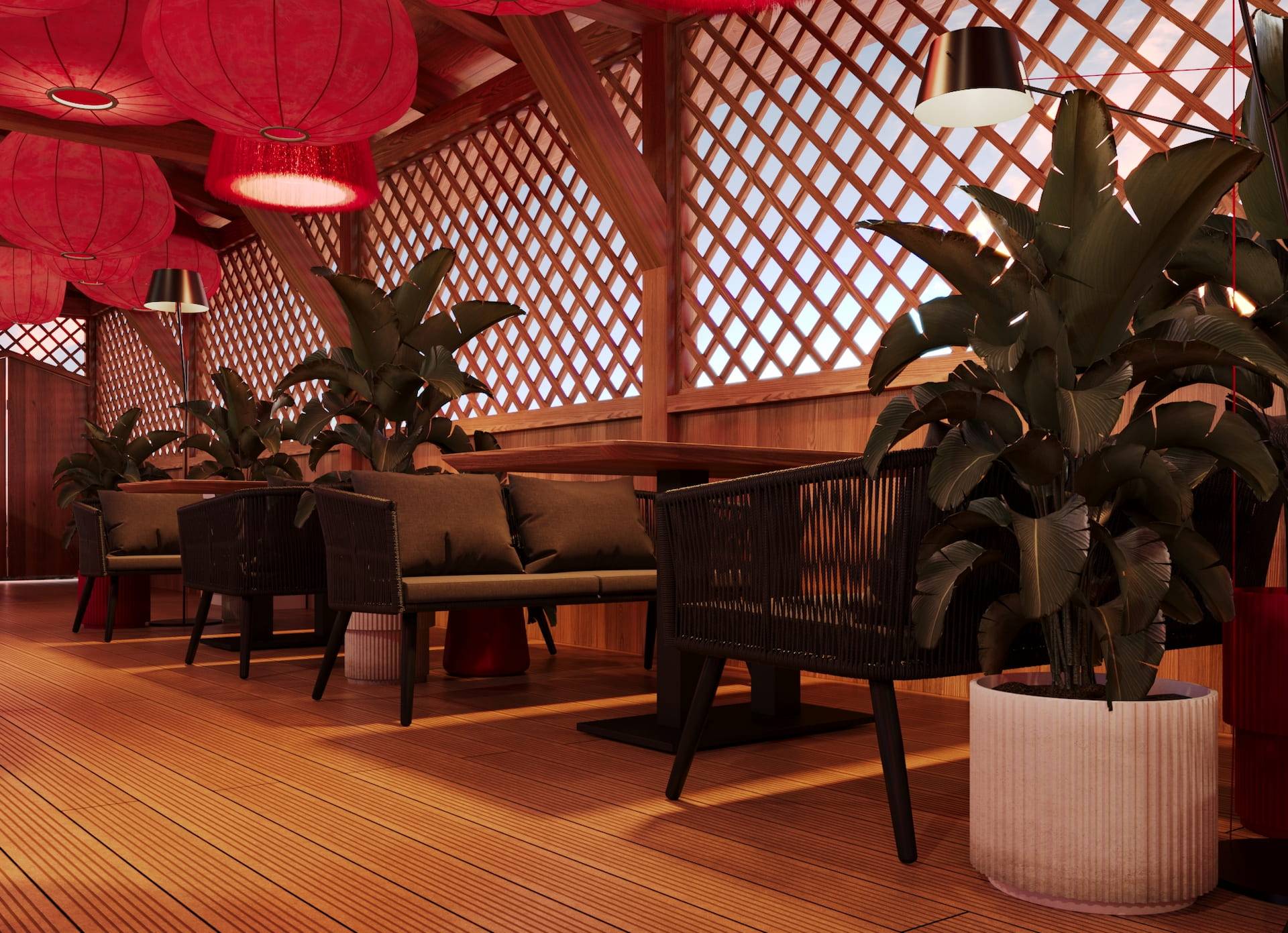 Indoor terrace, part of Ritz Nightclub. The main goal was to keep the original interior concept, creating only decorative design solutions.
