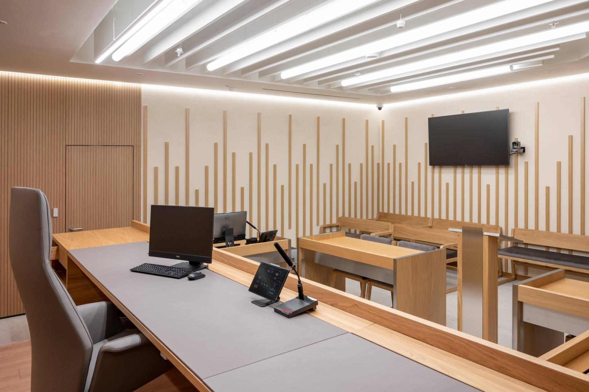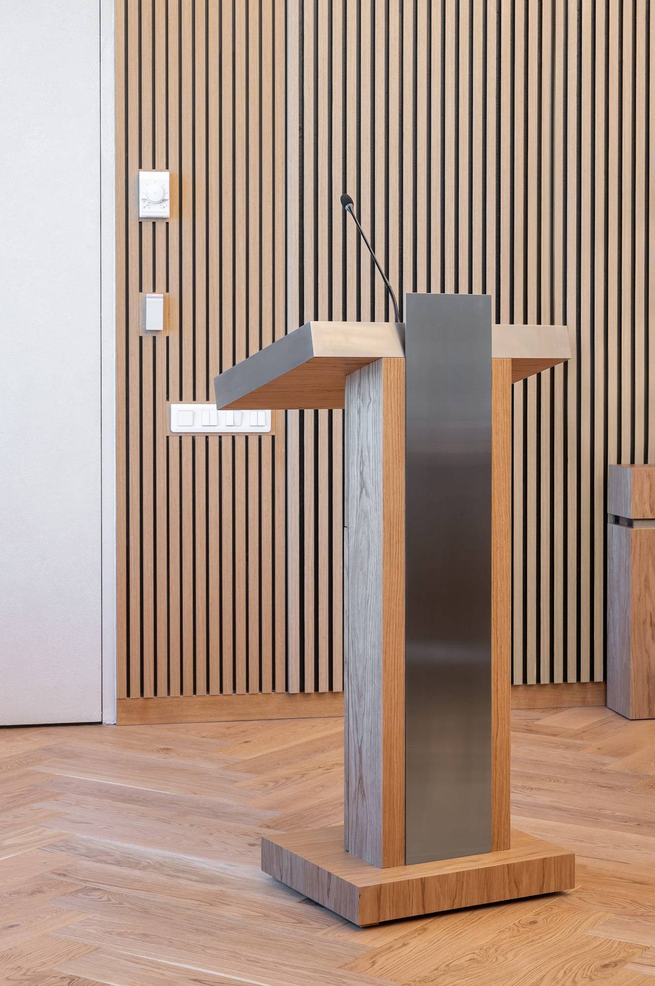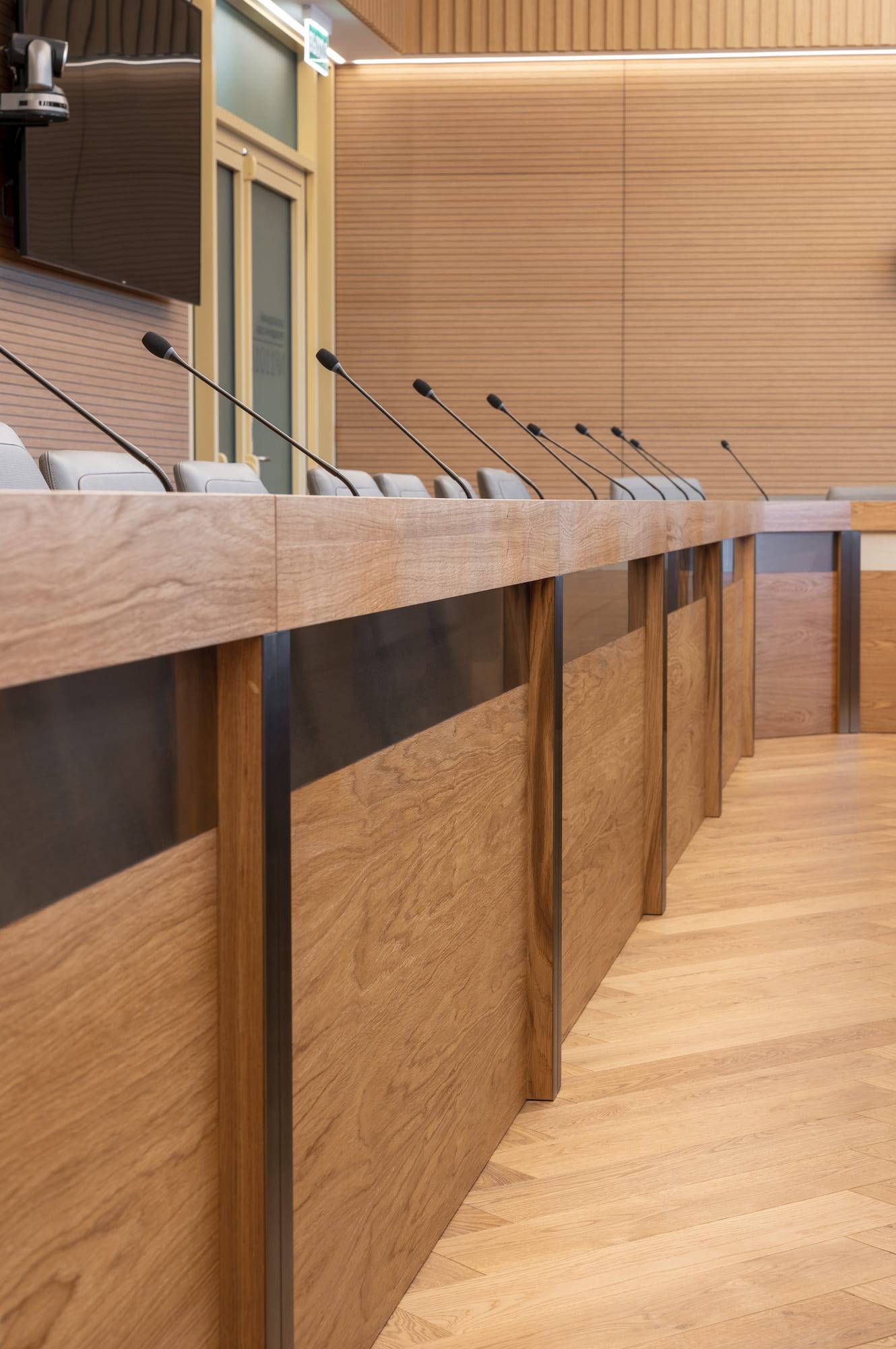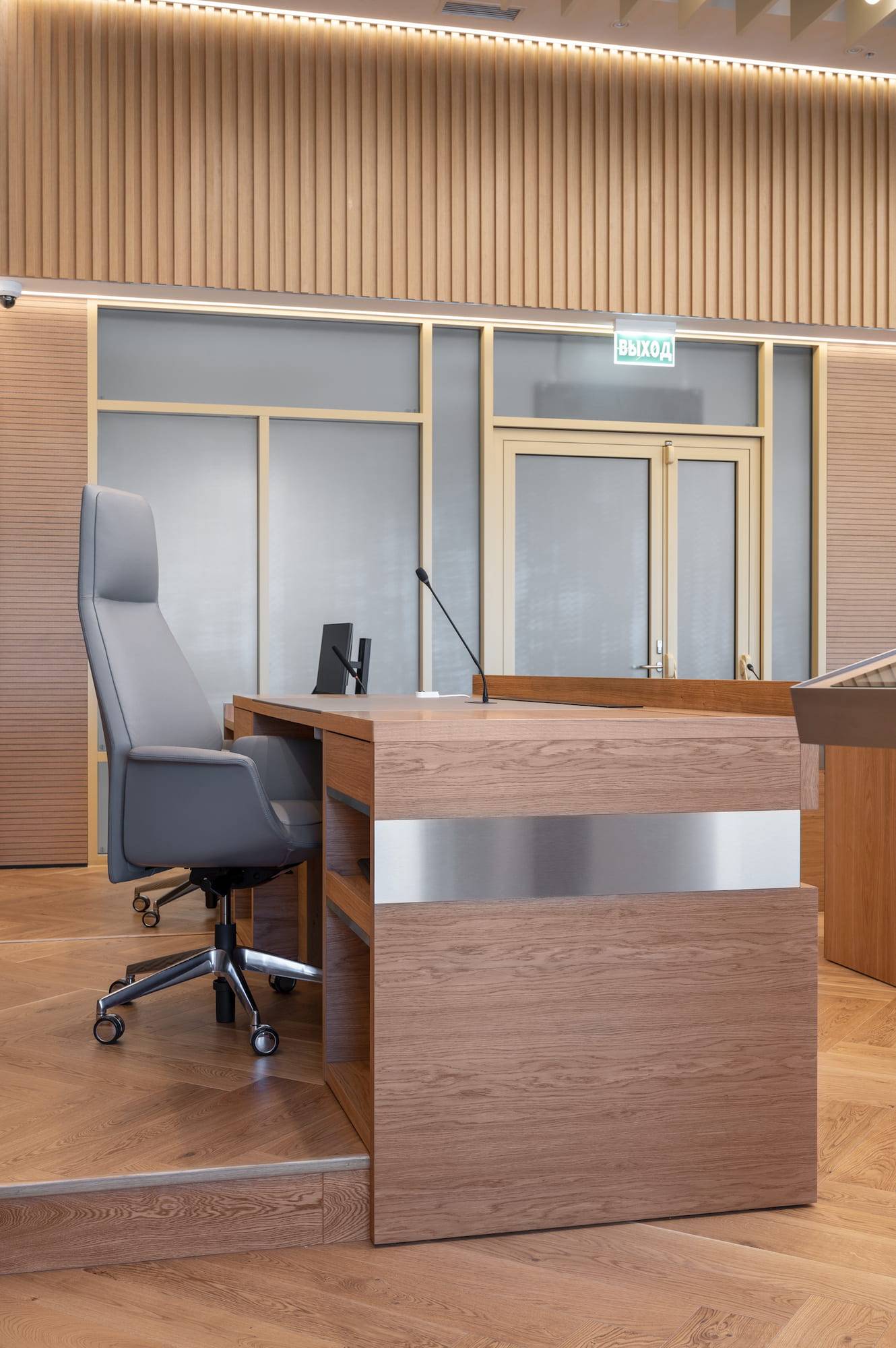 Courtroom furniture design was developed in collaboration with another architectural bureau. We created furniture design concept that solved ergonomic issues, ensured durability and maintenance and had long-term vandal and mechanical resistance.