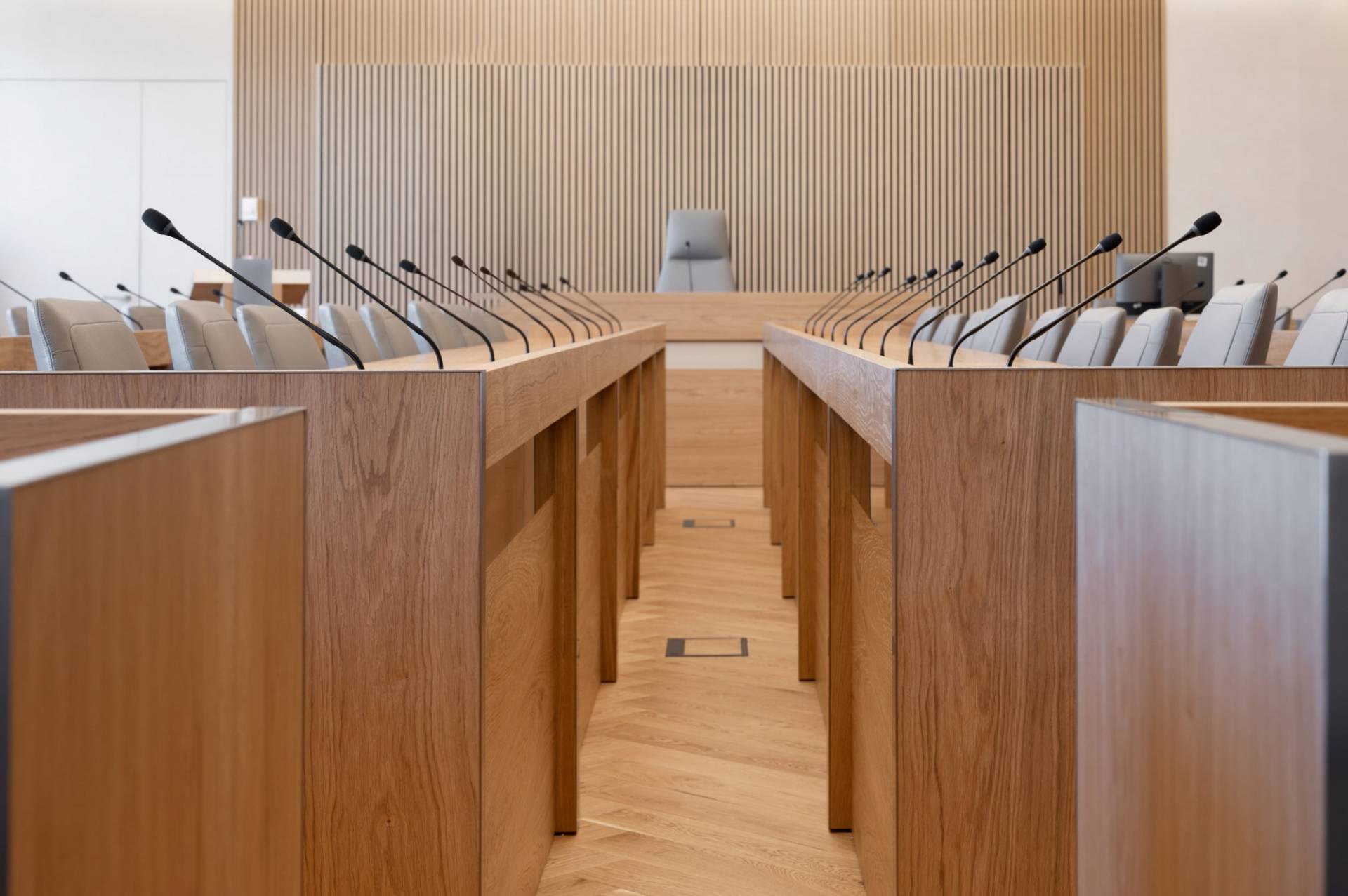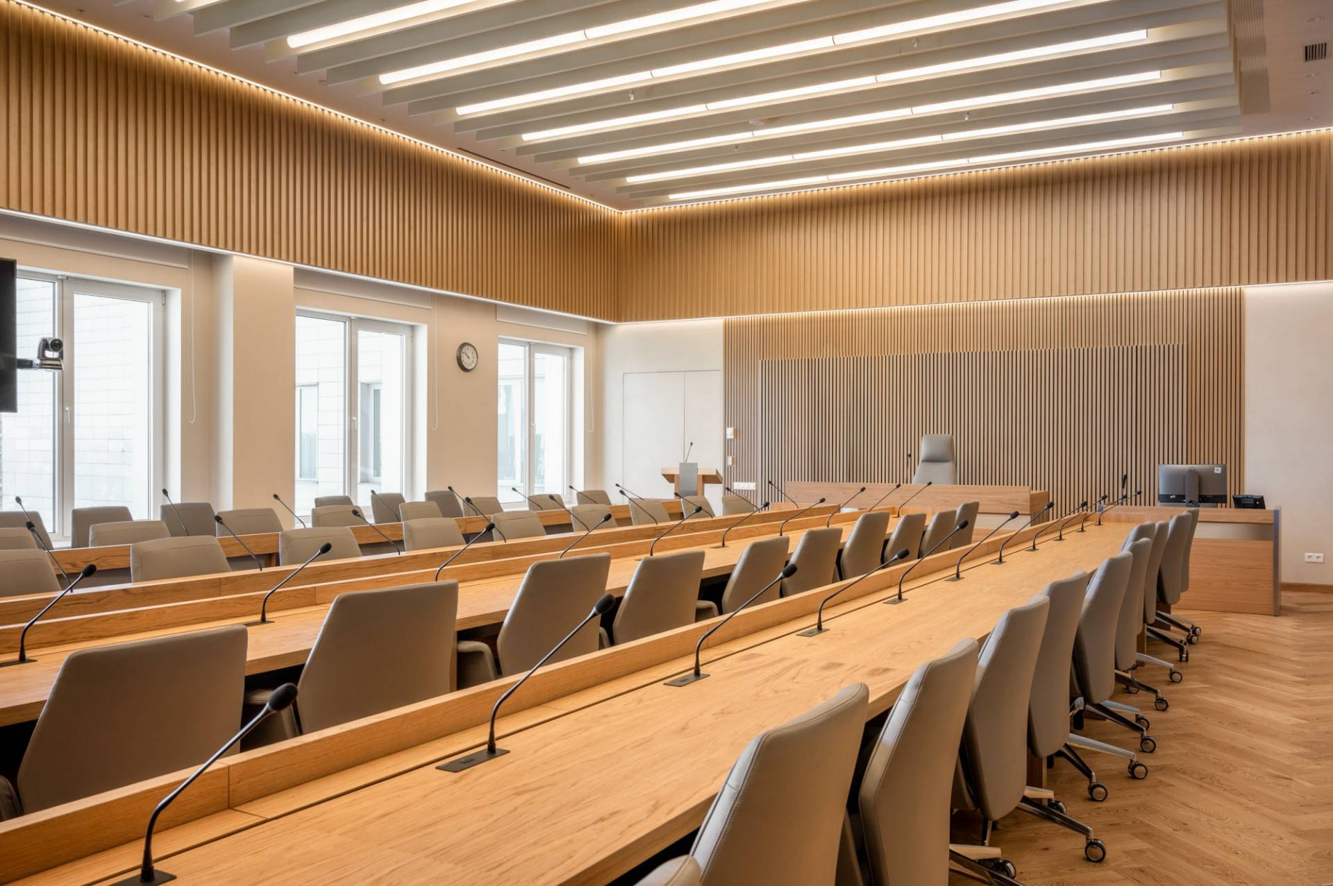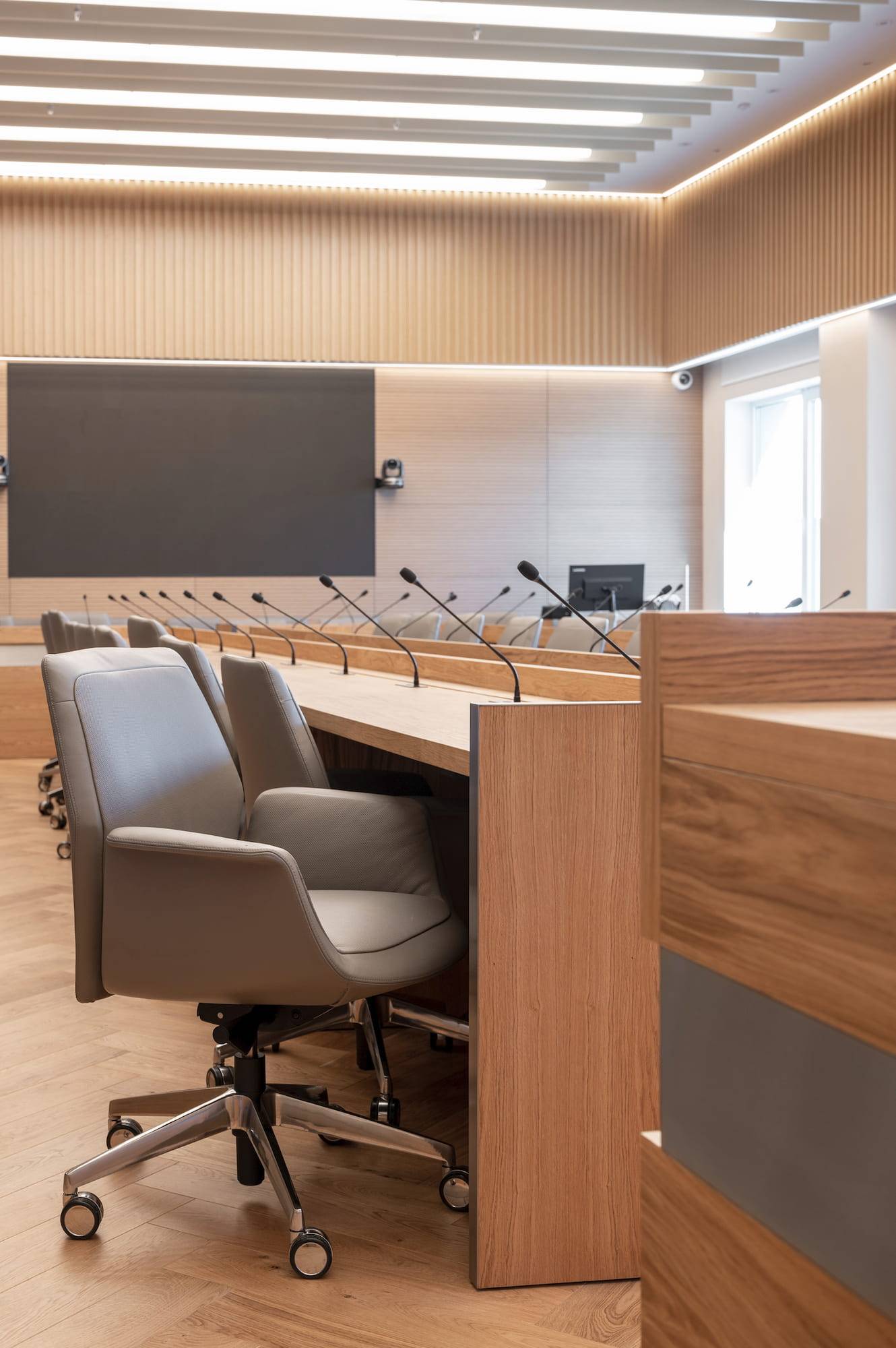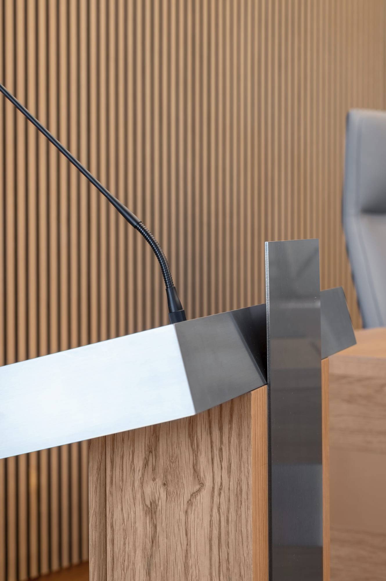 Courtroom furniture design was developed in collaboration with another architectural bureau. We created furniture design concept that solved ergonomic issues, ensured durability and maintenance and had long-term vandal and mechanical resistance.