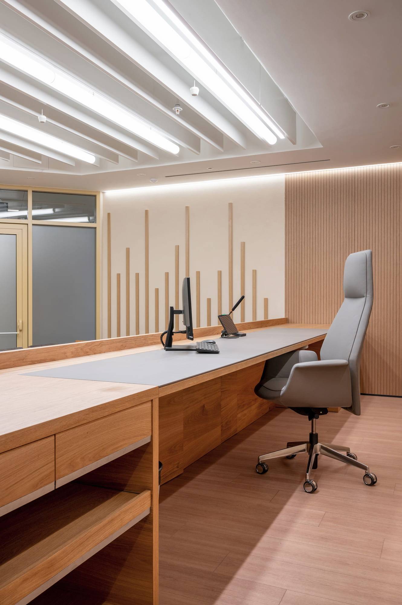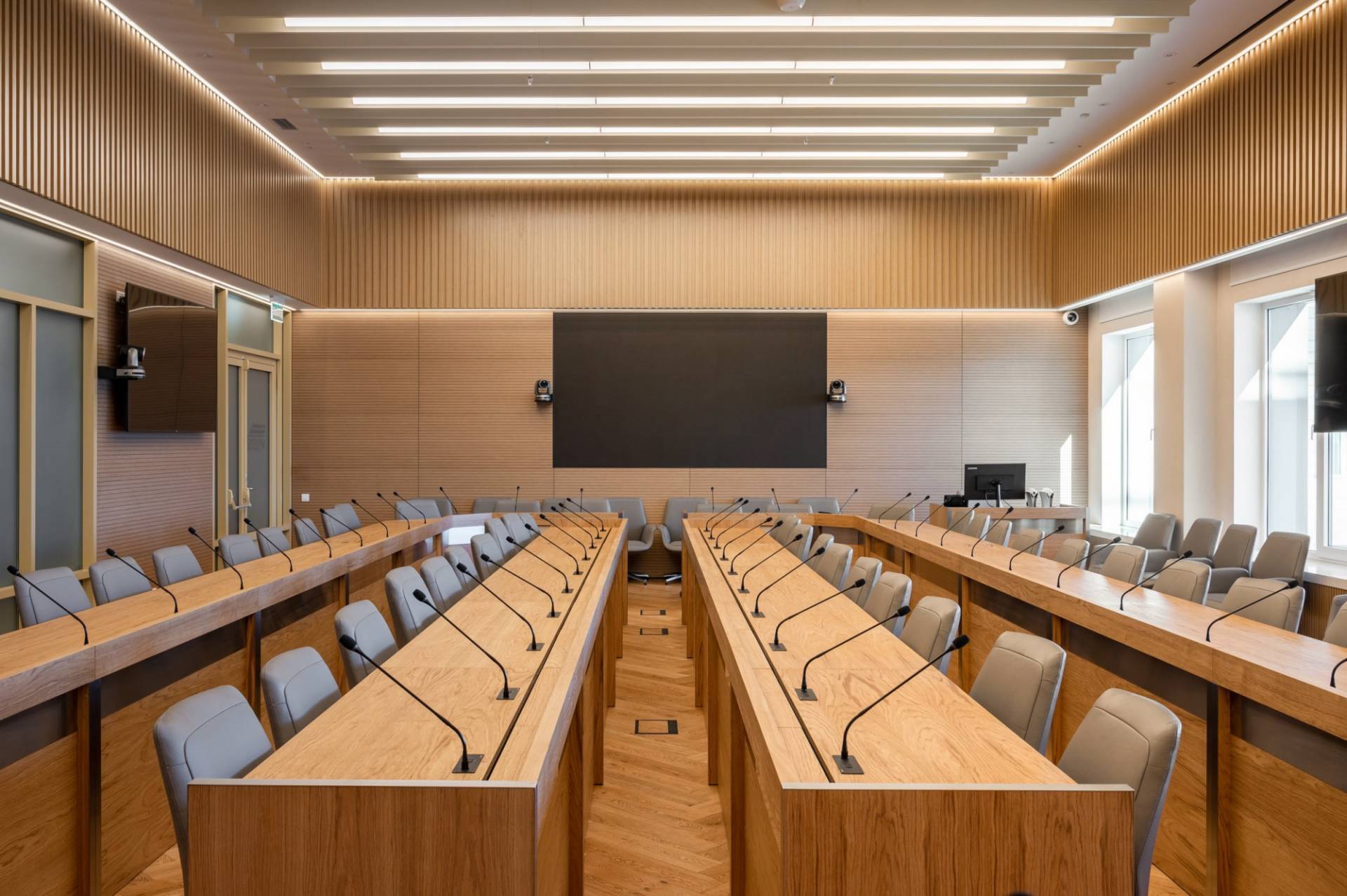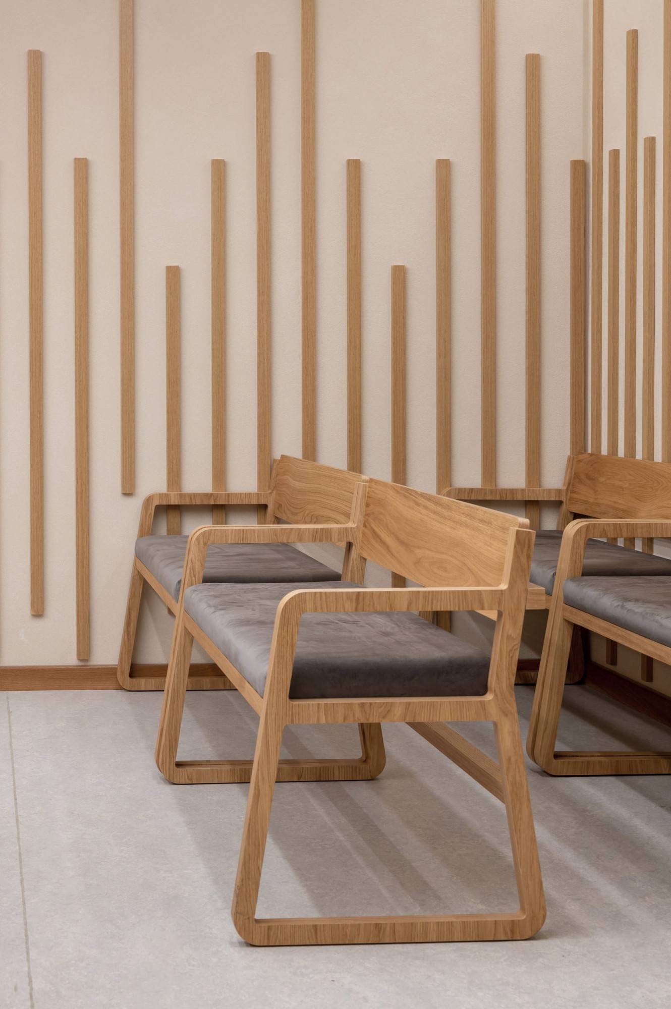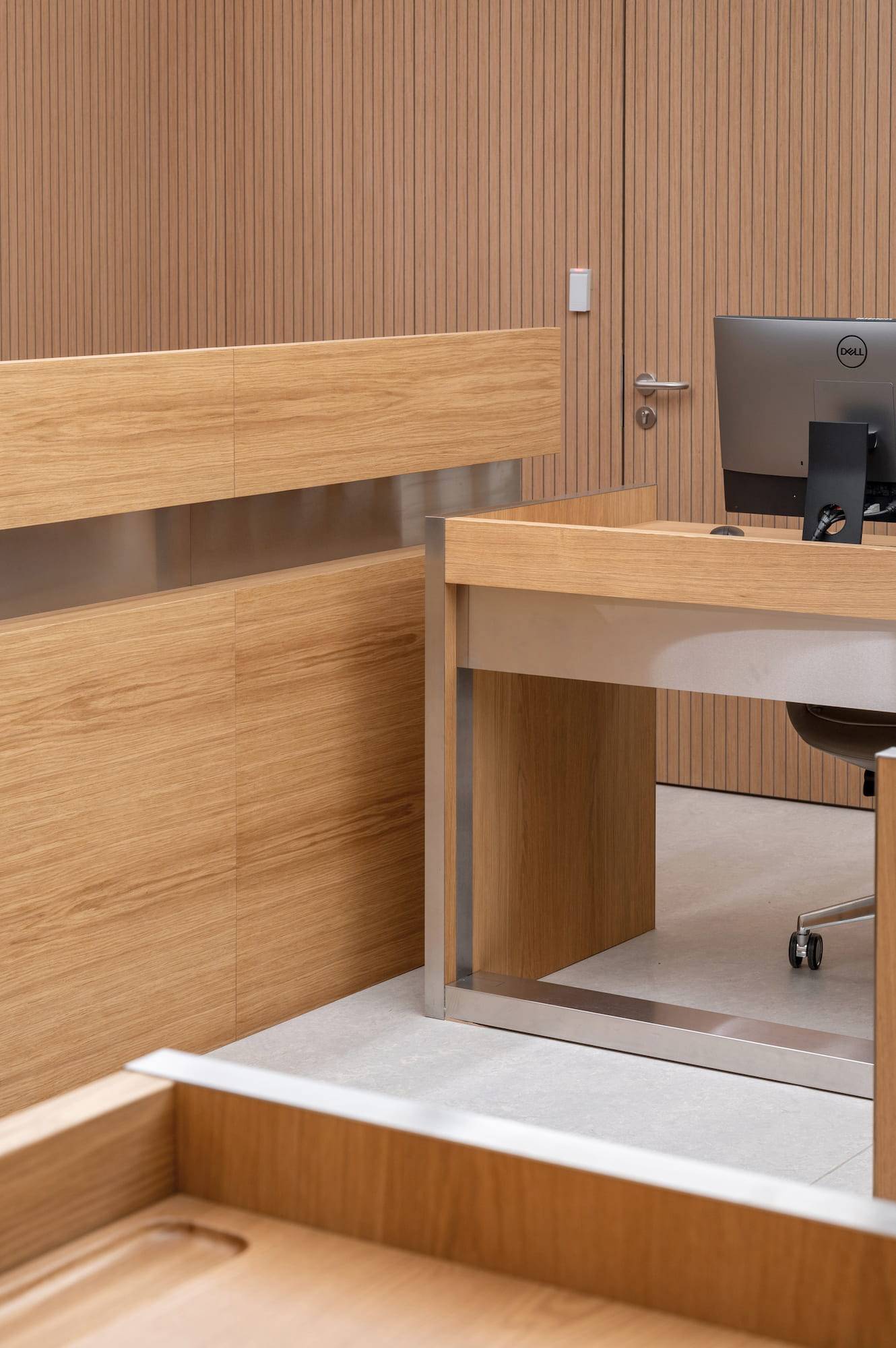Courtroom furniture design was developed in collaboration with another architectural bureau. We created furniture design concept that solved ergonomic issues, ensured durability and maintenance and had long-term vandal and mechanical resistance.