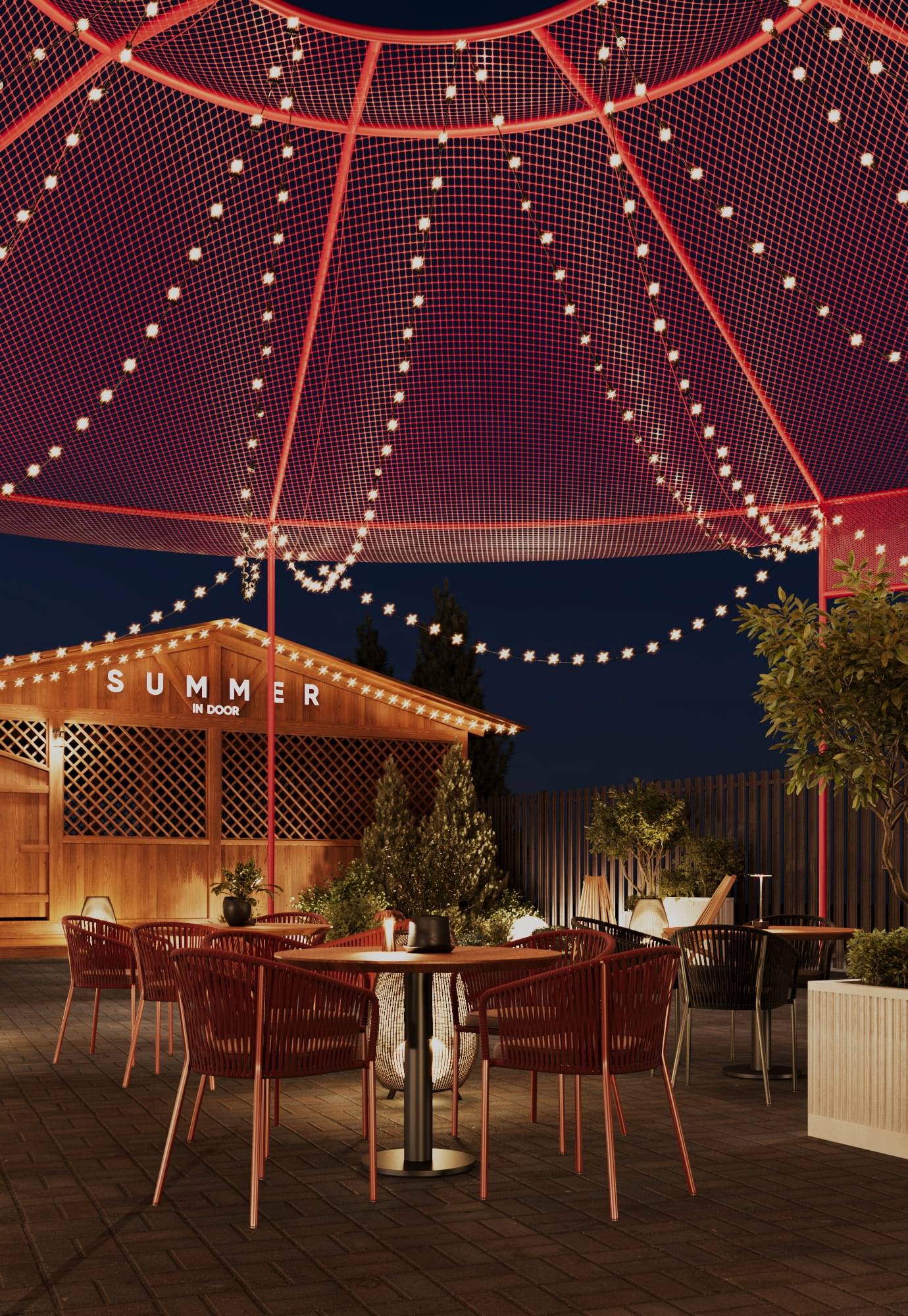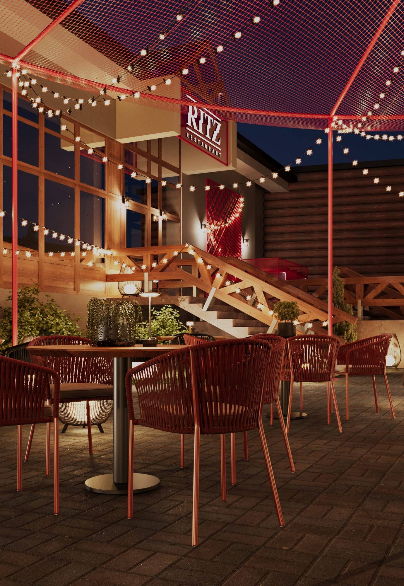 Outdoor terrace, part of Ritz Nightclub. Summer Outdoor terrace is open throughout the year in continental climate zone. Terrace has an art object that attracts visitors all year round.