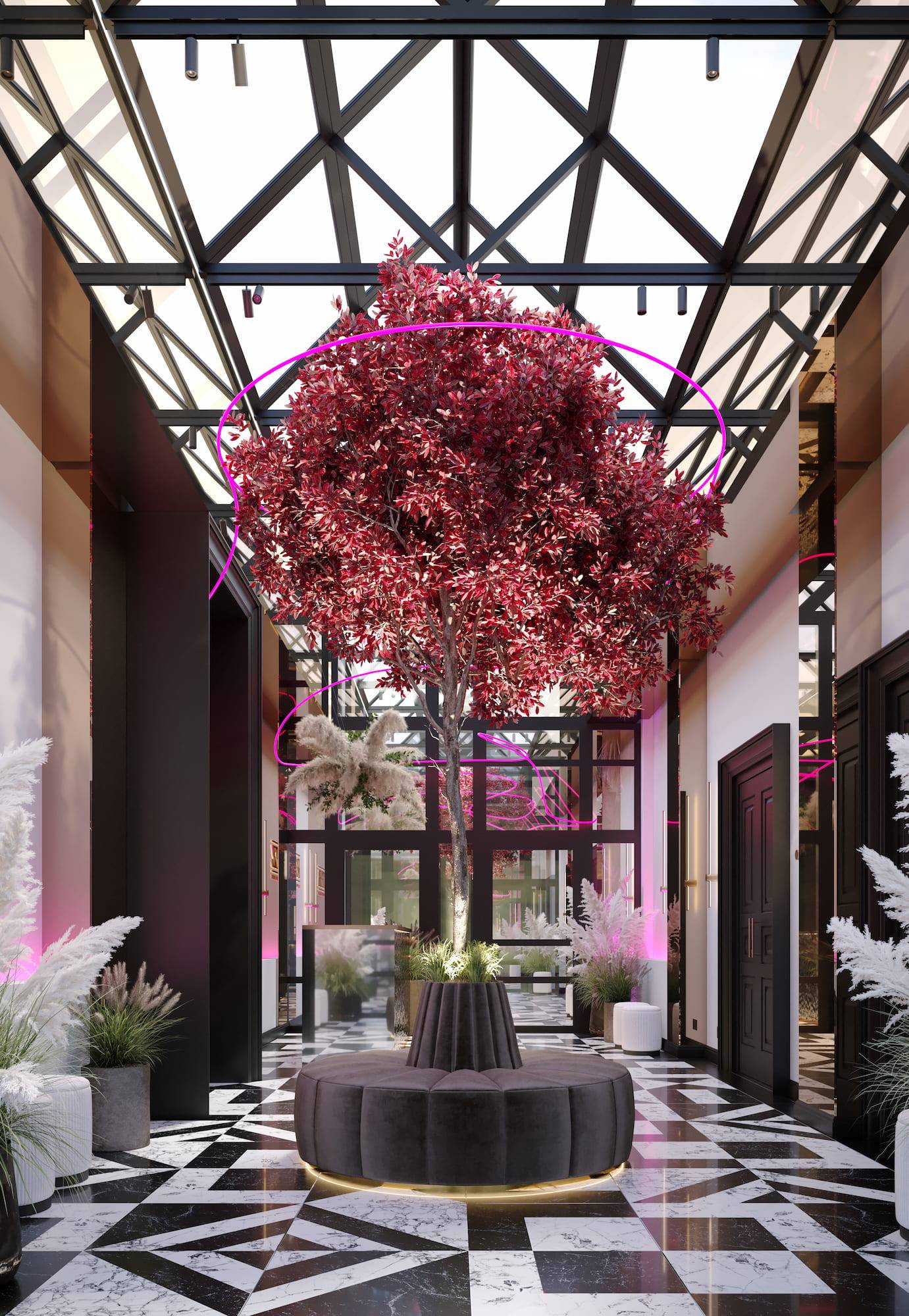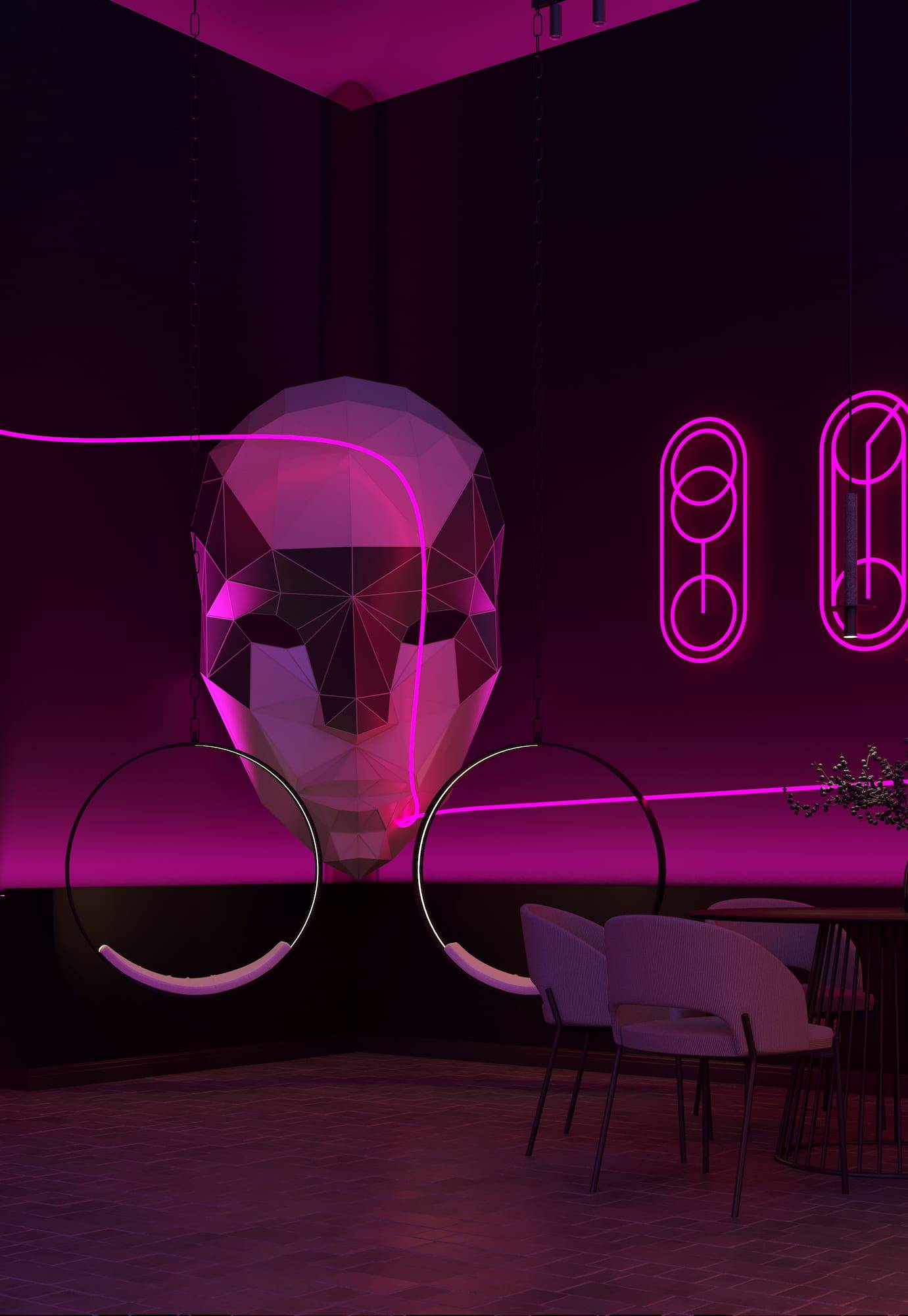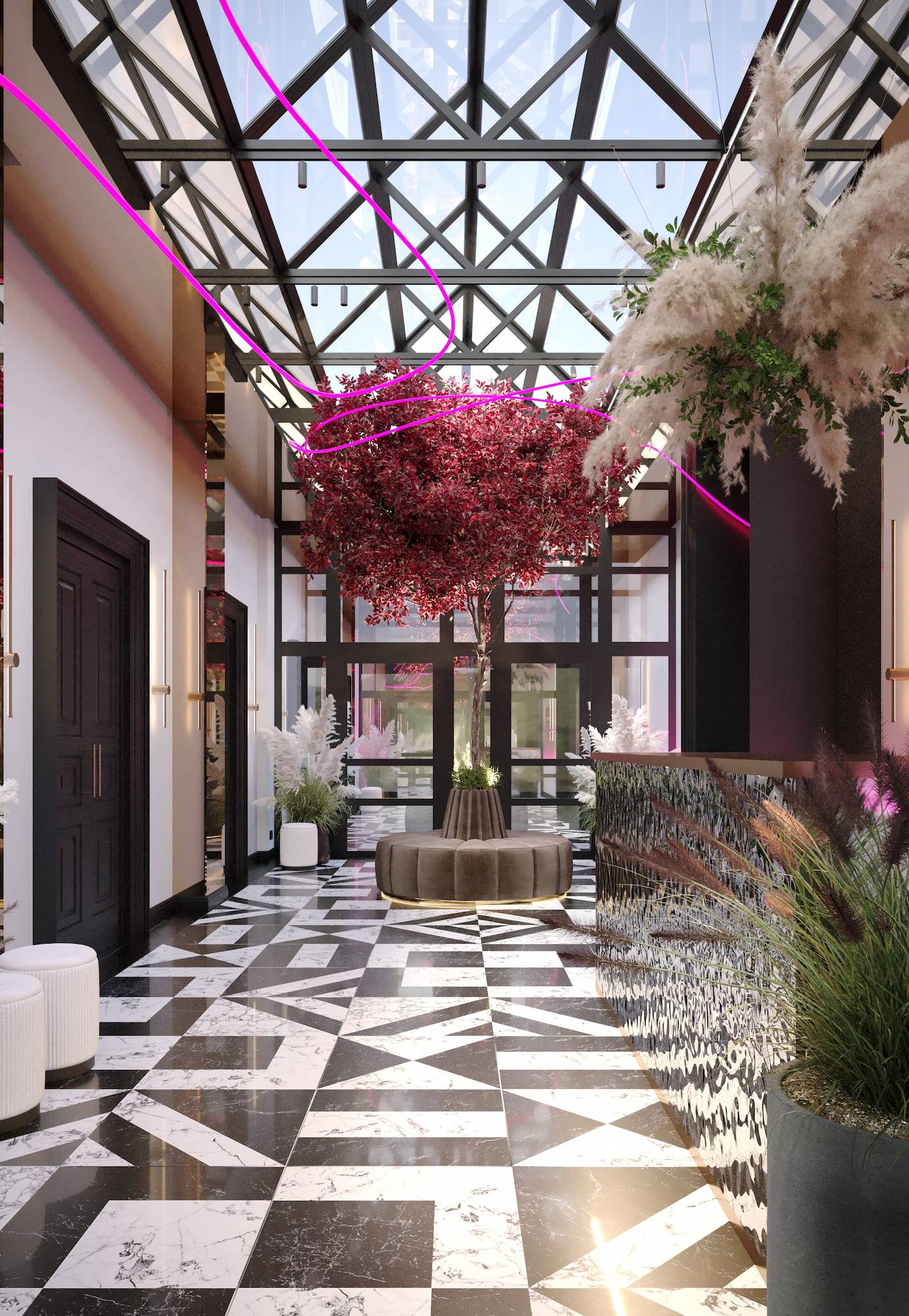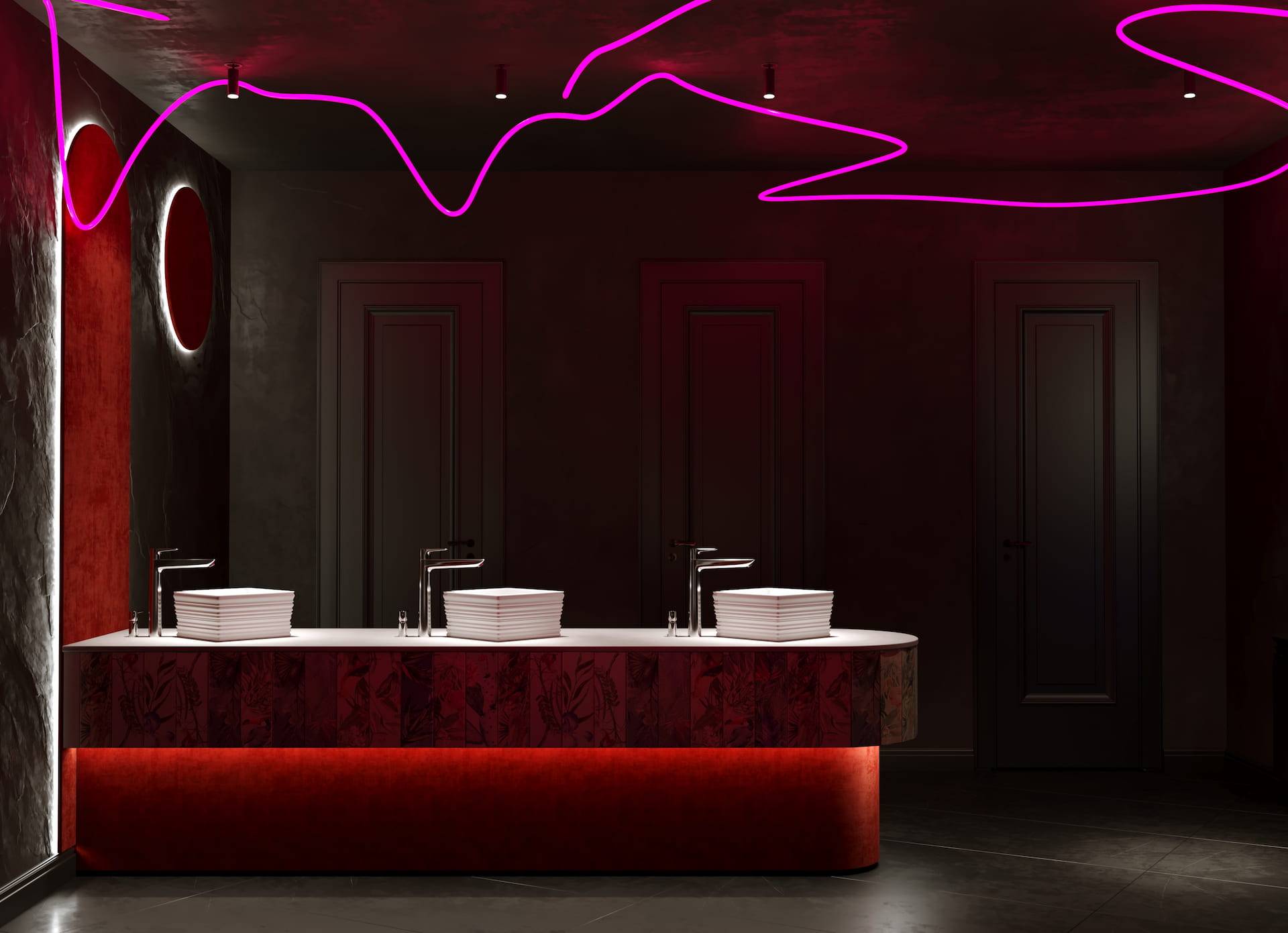 Ritz Nightclub located in the tourist area of Yakutsk. Building features two wings with various lounge spaces connected by a glass lobby.