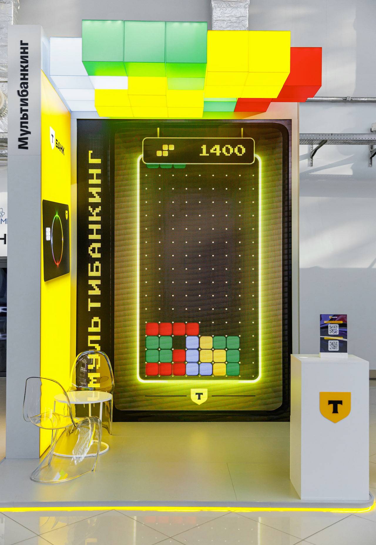 The stands show that technology is not just about interfaces, but about real life. The central installation is a 6-meter-high PAYvolution Tree with various lighting scenarios. Multibanking zone — demo of a new unified payments service and mega-tetris on an LED screen. Lounge Dolce Vita — a relaxation area with original hot drinks.