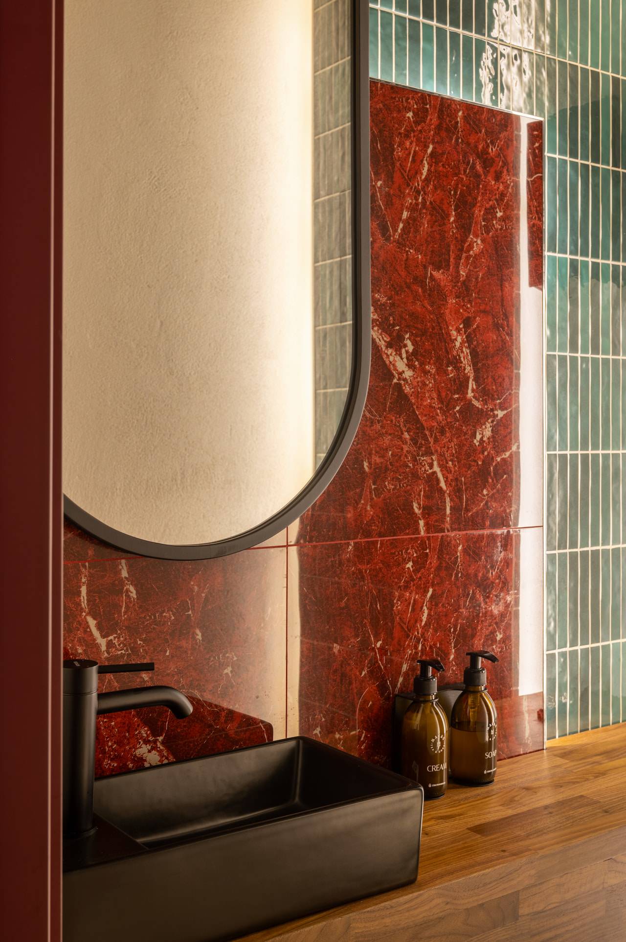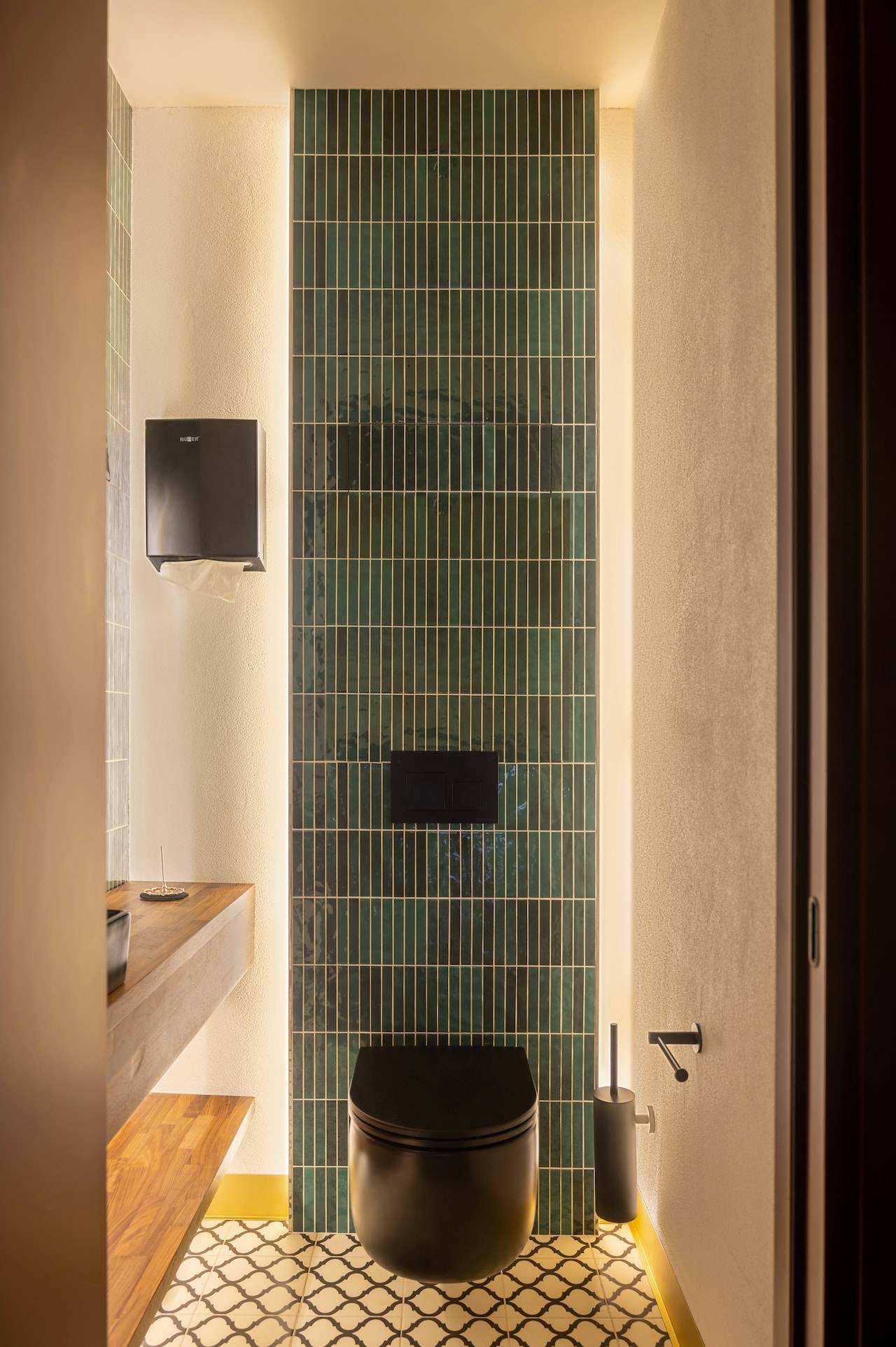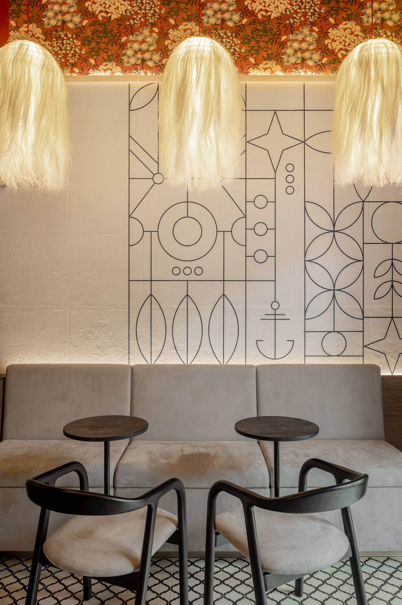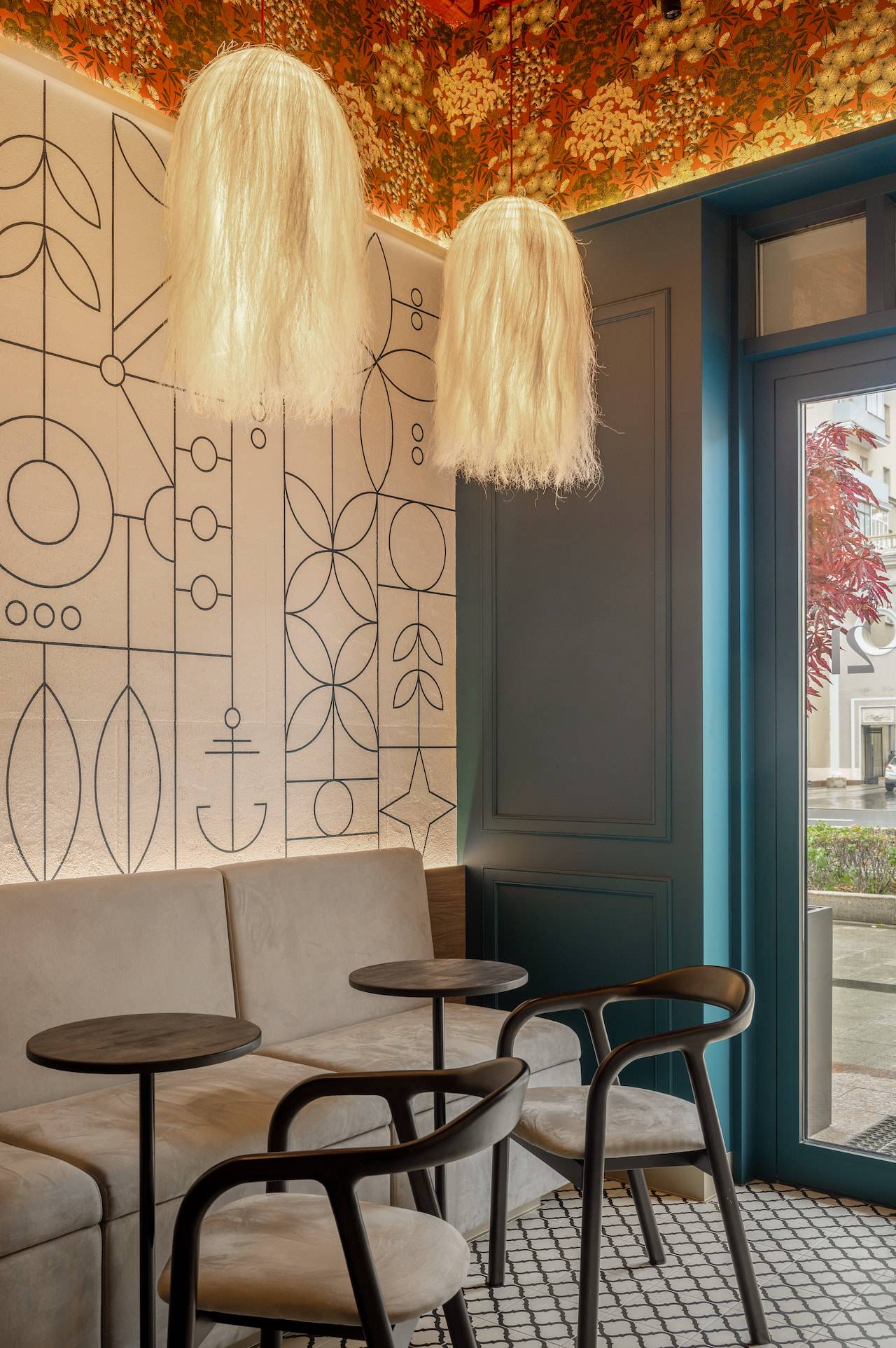 A tea cafe named after the Chinese city of Macau, which historically exported Chinese tea to Europe and has been influenced by Portuguese culture. Therefore the interior of this tea house includes elements of Portuguese style, such as natural wood, stone, "azulejo" tiles, plaster with the effect of aged bricks, and saturated colors. The furniture for the tea exhibition resembles Chinese traditional architecture. Oriental-style wallpaper sets the atmosphere of the cafe, while light agave lamps add bright accents to the space.