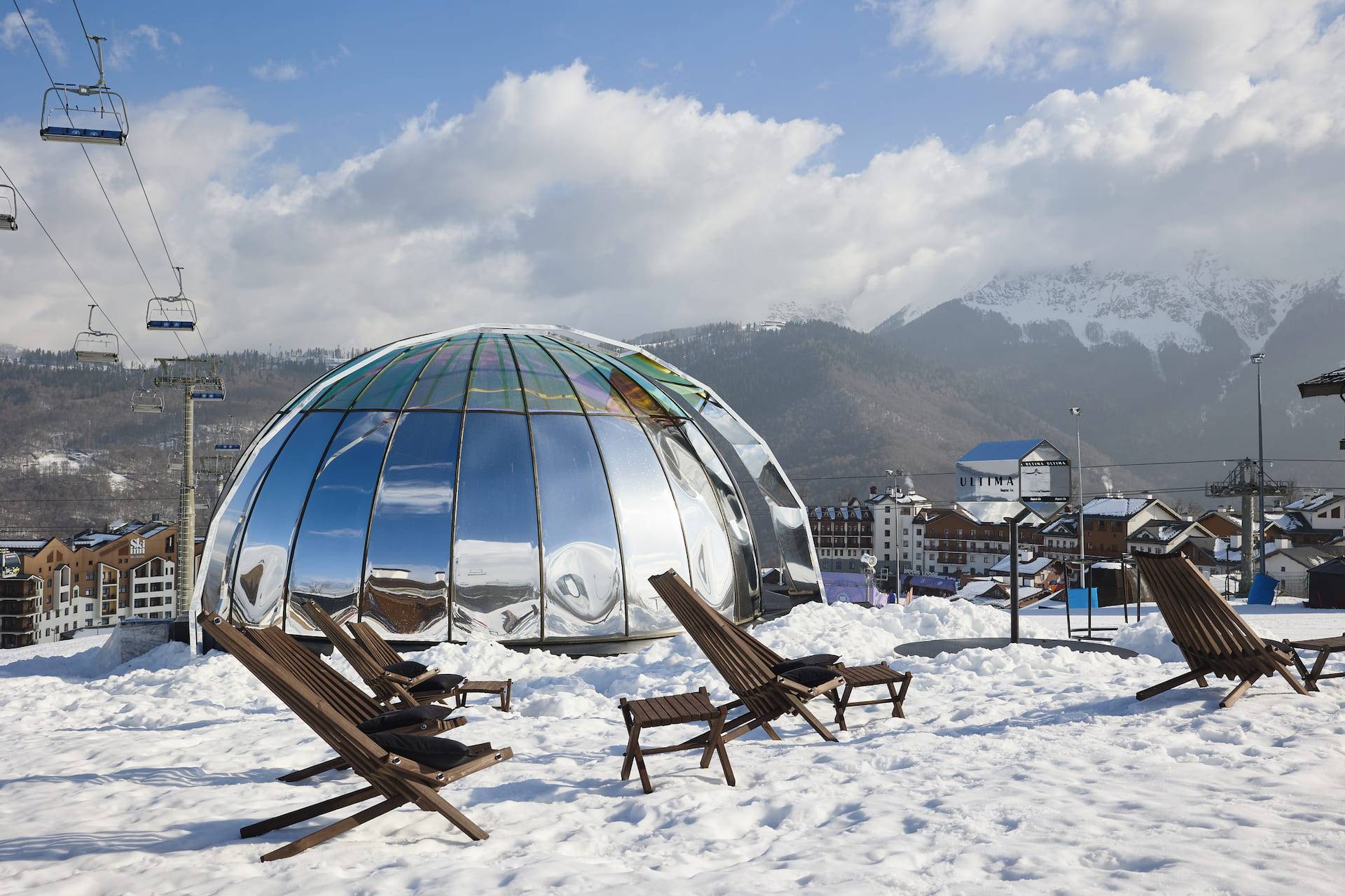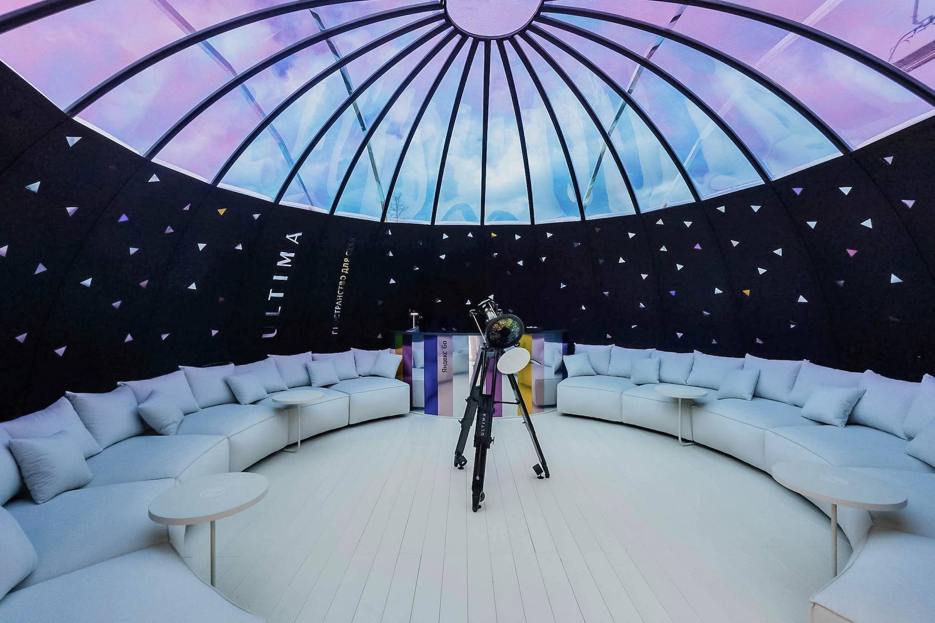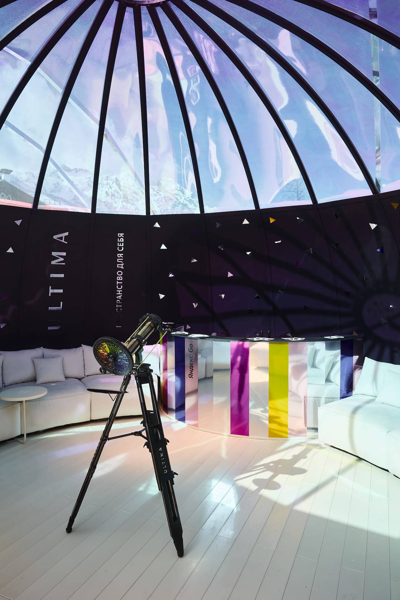 ULTIMA observatory, a unique ideal space where you can relax after a busy day and prepare for an even more eventful night of the festival, was open for one week below the mountain peaks and above the noisy parties in Rosa Khutor, Sochi.
