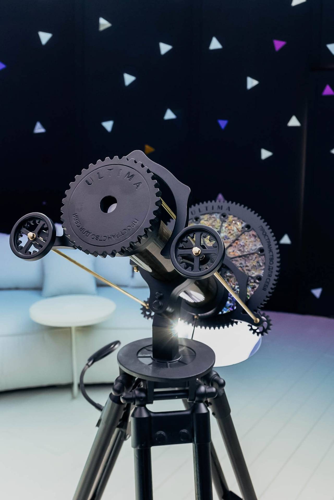 - — In the central part of the lounge/ space you could see a hand-assembled kaleidoscope that you could rotate and look at the outer world through your senses.